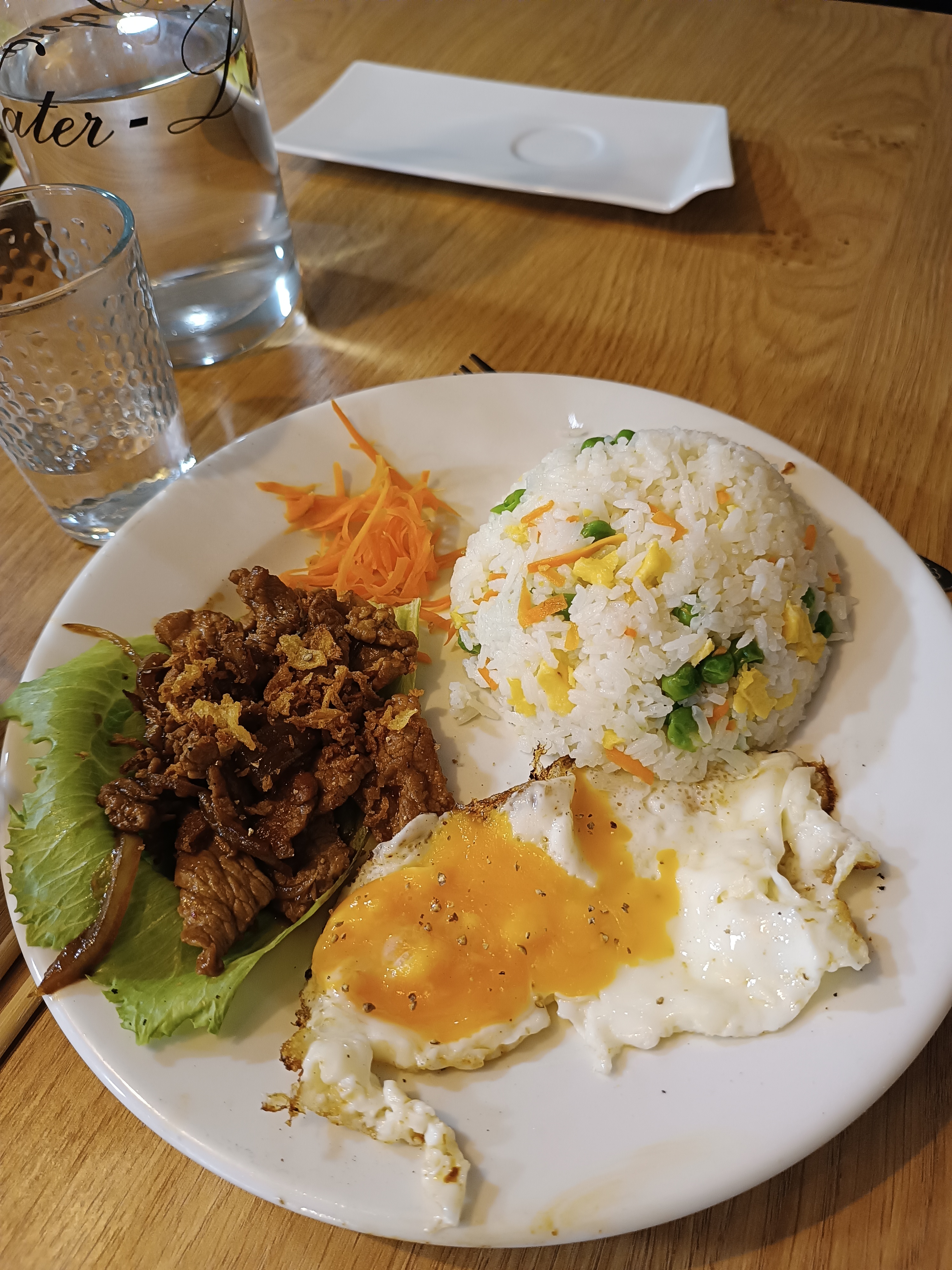 Le cadre du restaurant était sympa par contre j'avoue été avoir un peu déçue par les plats 😭 15€ une assiette avec du riz du céleri des carottes et du poulet.... Bon, j'ai trouvé ça un peu trop cher pour ce que c'était 🤔 Les entrées étaient bonnes (les nems et les raviolis crevettes sont vraiment bons) Pour les plats je trouve qu'ils sont ''trip simples'' dans le sens où le riz sauté aux légumes avec du poulet je peux y faire chez moi 🫠 du coup je m'attendais à quelque chose de plus original :/ Et j'ai pas pu payer en carte restaurant parce-que la dame a pas compris que je voulais payer 15€ en carte restaurant et pas 27€ 😅 Donc forcément quand elle me disait ''non mais la carte restaurant elle passe pas tout le temps'' et effectivement quand on met + que le montent autorisé c'est logique que la carte restaurant ne marche pas 😭