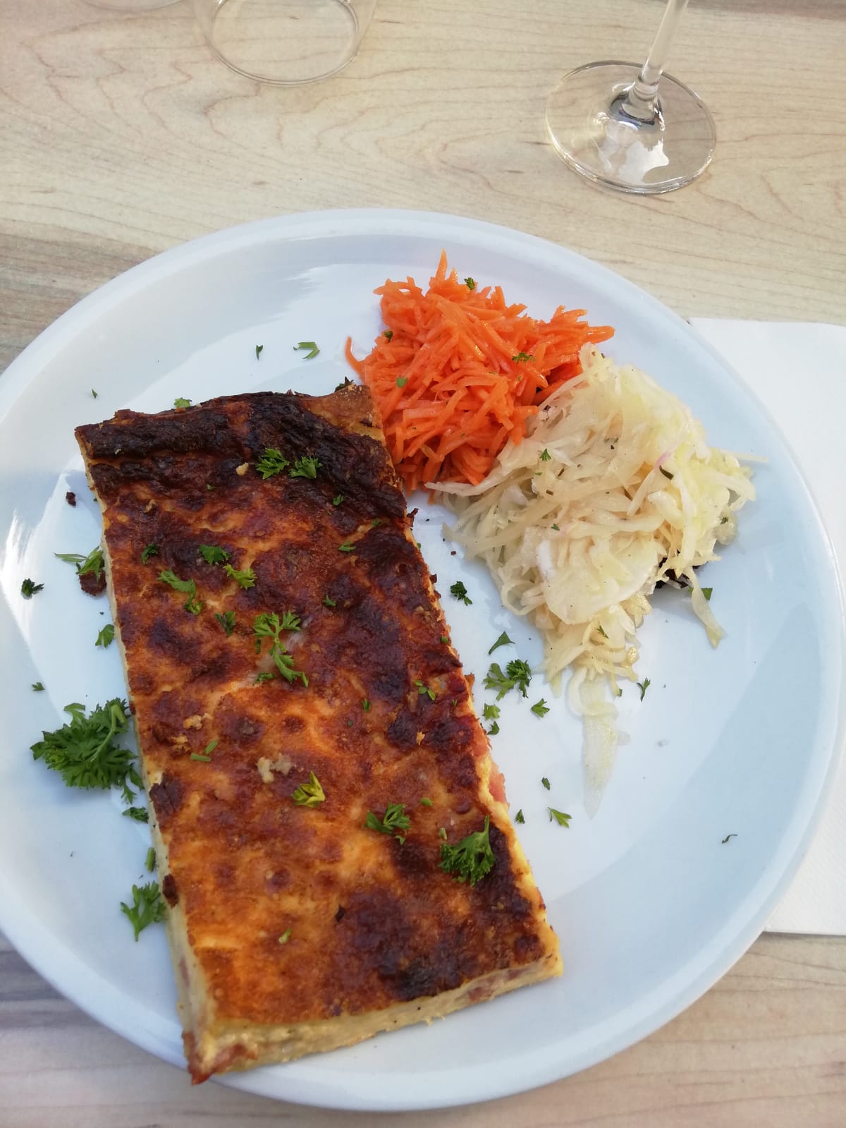 Malheureusement, le plateau d'apéritif était très décevant. Très riches en viande et les salades étaient trop acides. Le pain a été servi plus tard, mais cela a pris beaucoup de temps - malheureusement, le rapport qualité-prix n'était pas du tout correct. La tarte flambée était extrêmement savoureuse et l'ambiance était difficile à battre !