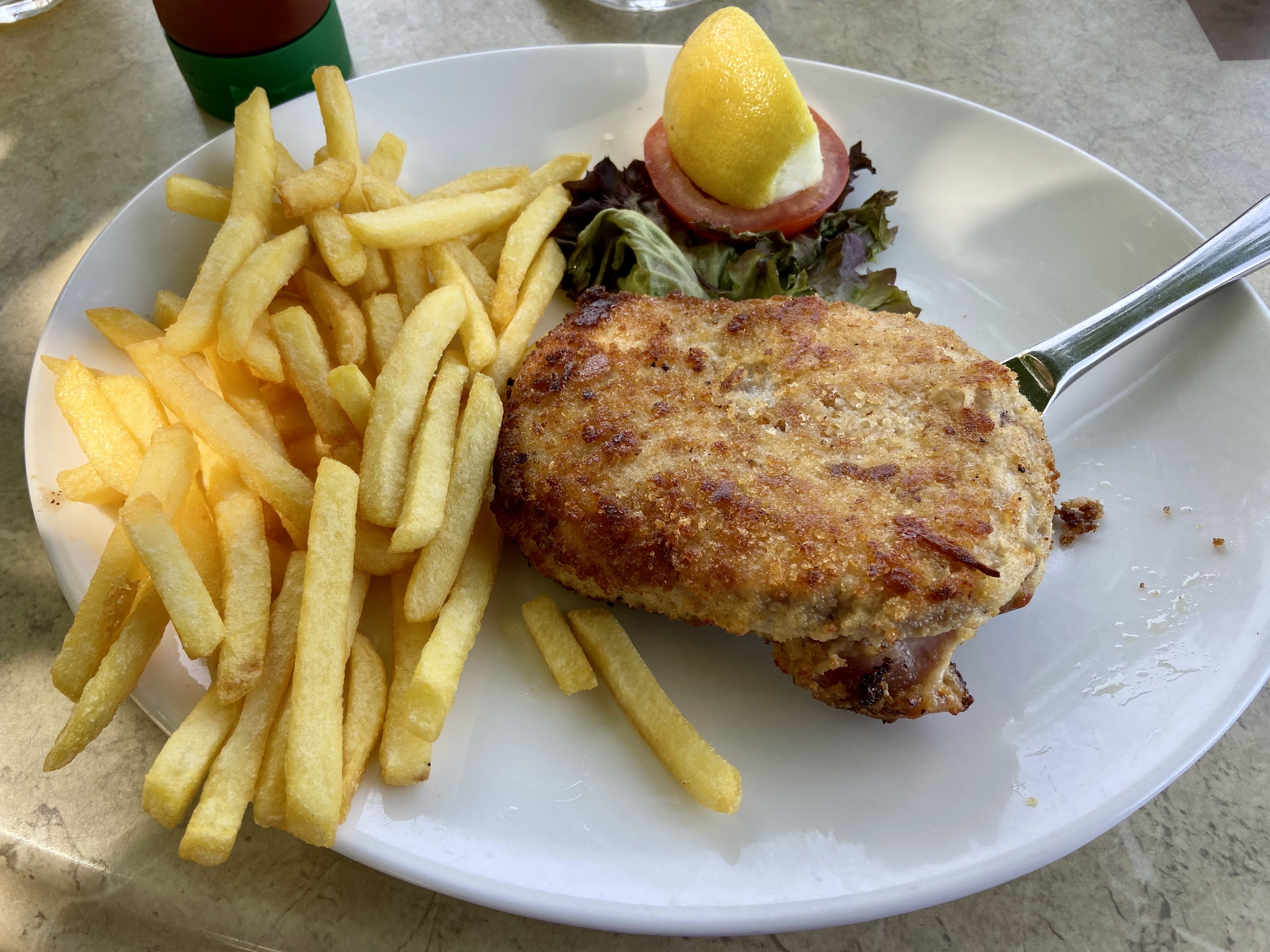 Malheureusement, je pensais qu'on pouvait bien manger en France ! J'ai commandé un cordon bleu, avec de la salade, des frites, de la mayonnaise et quelque chose à boire. Après environ 5 minutes, la nourriture était déjà sur la table pour prendre un verre ! Ce n'est pas possible....... Les frites et la mayonnaise sont bonnes à manger... Mais le Cordon bleu est trop sec et la salade n'a rien d'extraordinaire. Ayez un conseil pour le propriétaire, les gens économisent de l'argent s'ils restent assis plus longtemps....... Il n'est pas nécessaire que ce soit bon marché, mais j'attends de la qualité pour mon argent, et c'est difficile à trouver ici. Le seul avantage c'est qu'ils ont une tomate super Richard.....