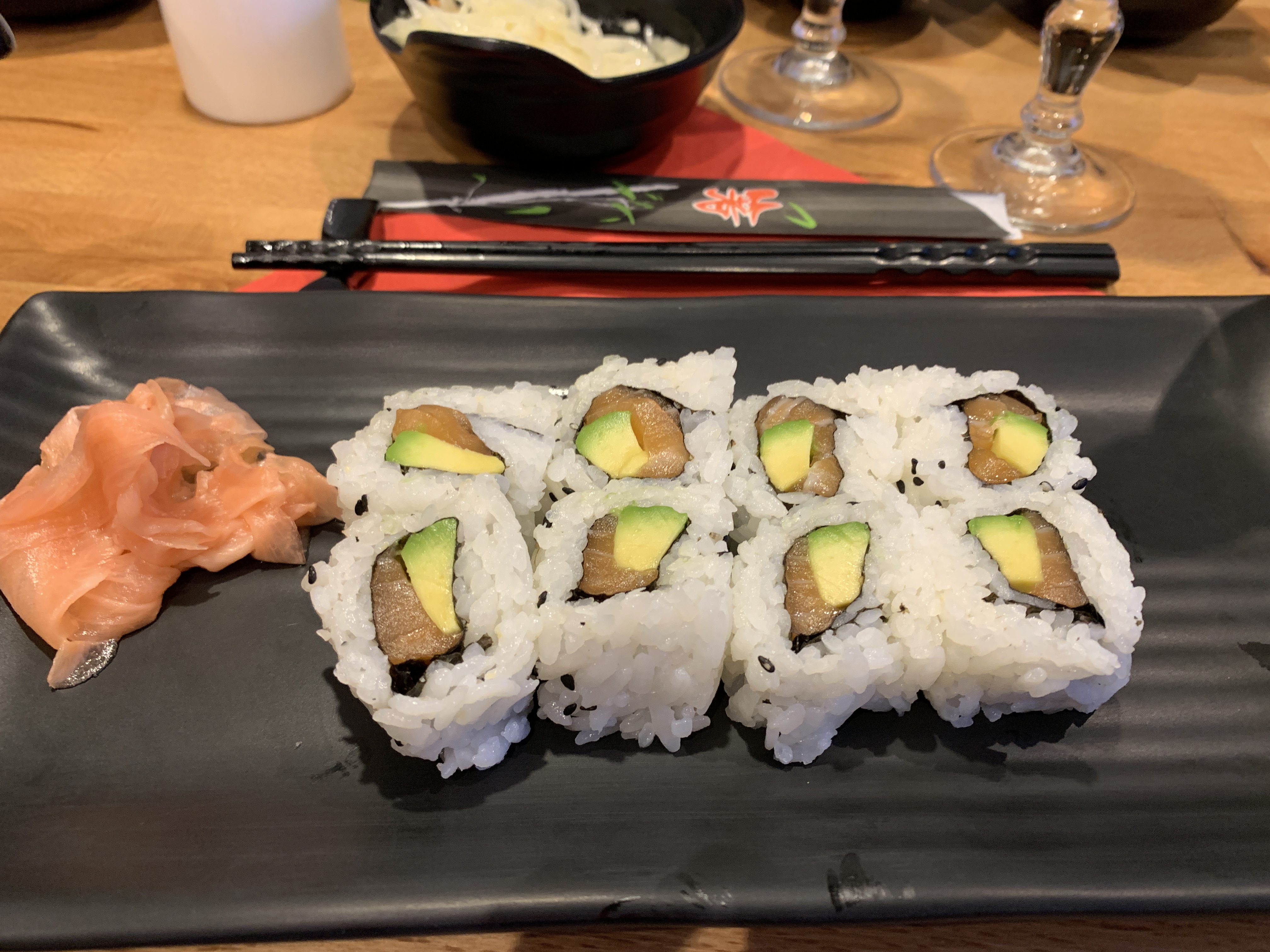 J'ai pris à emporter. Service rapide et agréable, mais la qualité des makis, des gyozas et de la soupe est assez médiocre. Je n'aurais pas eu envie de dîner sur place car la salle n'est pas très chaleureuse.