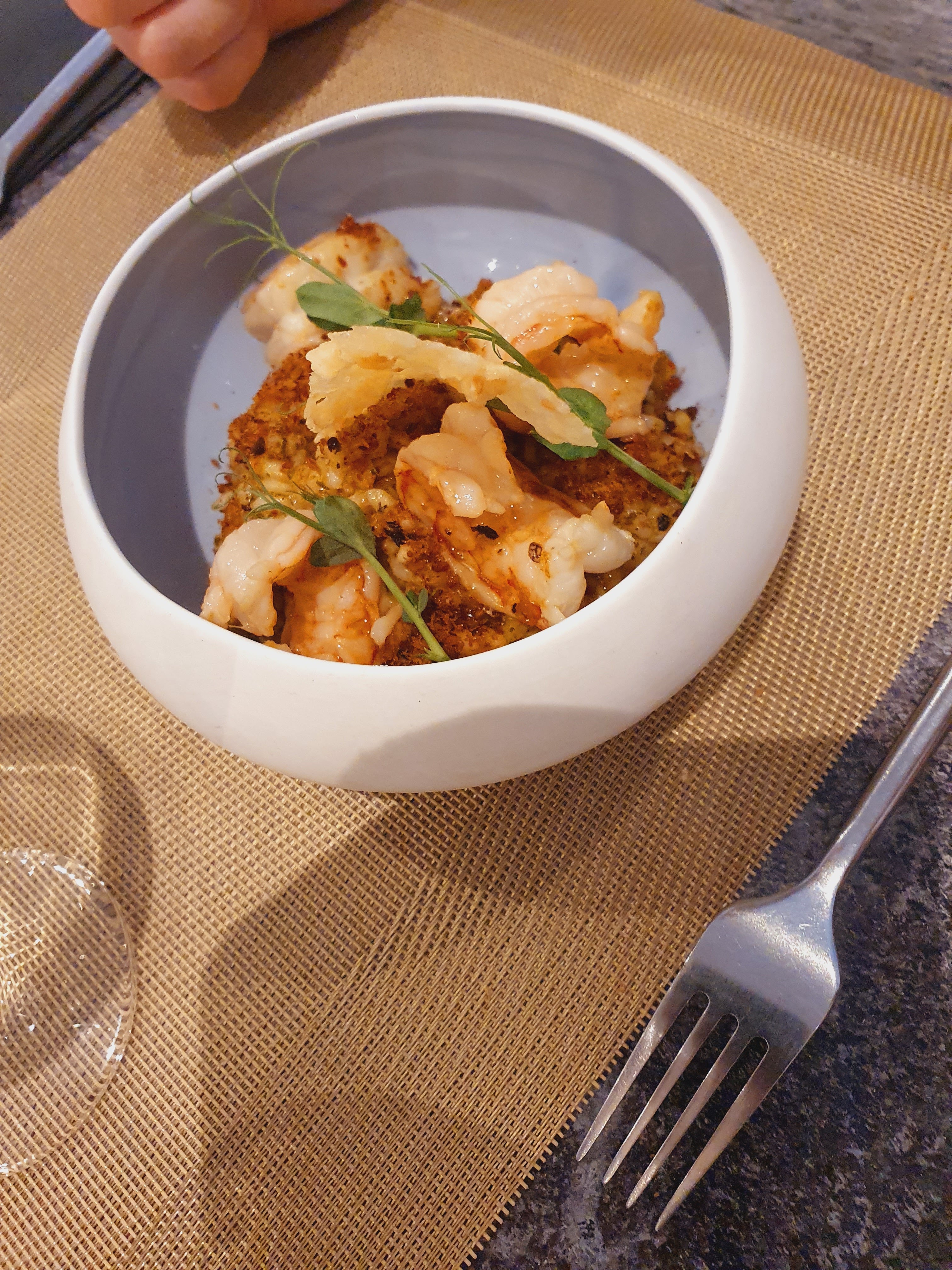 Si vous aimez les plats, desserts typique cuisine française mais revisités, c'est ici qu'il faut vous rendre : Je recommande la formule avec les saisons : L'entrée au thon jaune rehaussée par mangue, agrumes, oignons rouges était très fraîche et délicieuse, portion de thon ++ généreuse Le plat était plutôt classique avec du risotto et gambas mais également très bon et personnellement j'apprécie de manger des plats que je n'arrive pas à cuisiner : la cuisson du risotto était parfaite Hola pour le dessert qui était aussi incroyable : crème brûlée au cointreau avec clémentine, pamplemousse et ganache chocolat Du début à la fin, il y a un twist partout Les EPD sont aussi beaux que bons La petite décoration de Noël mignonne Bref, je recommande les yeux fermées