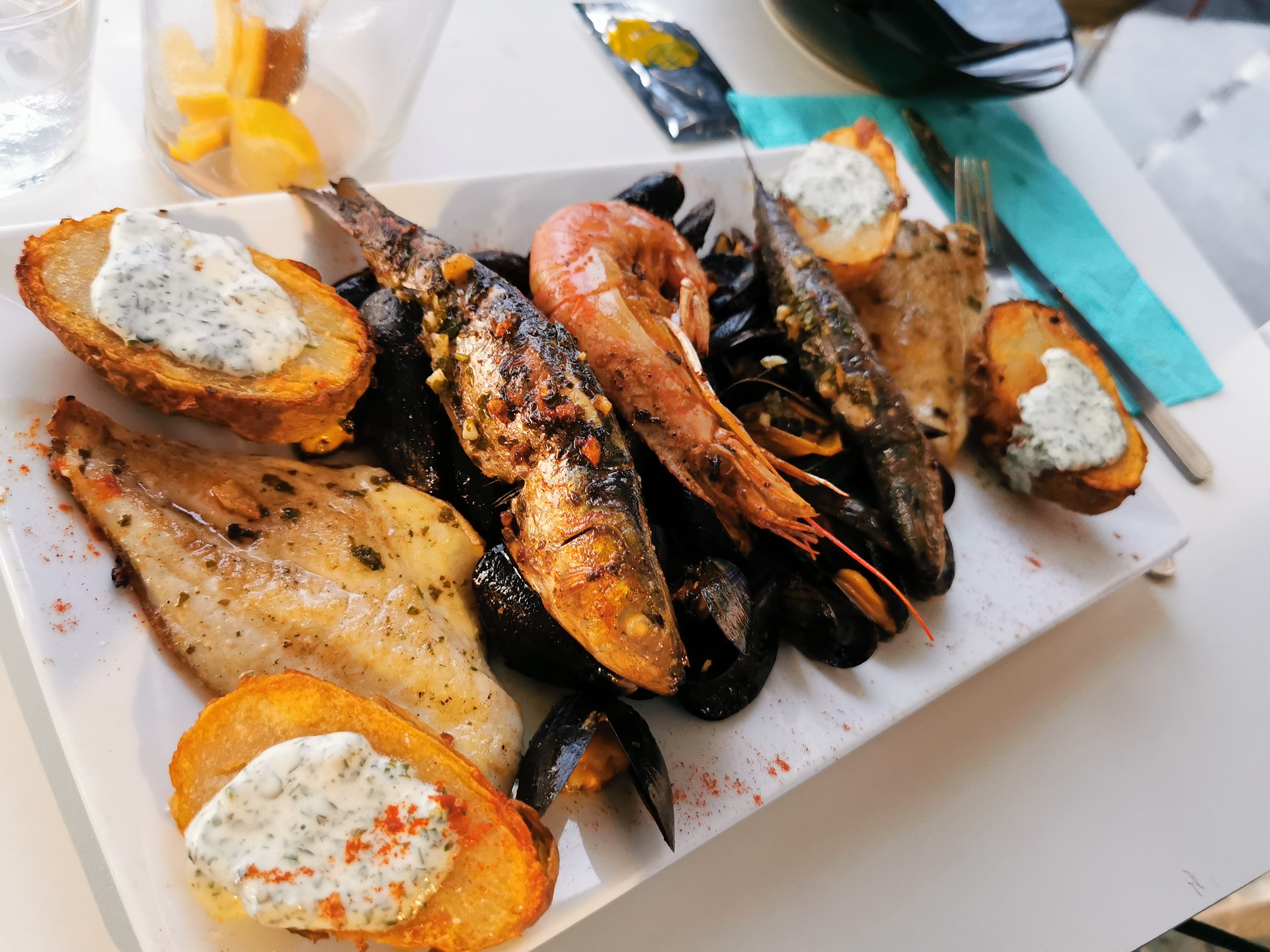 Un repas face à la mer. Une serveuse très professionnelle. Continuer comme ça. 👍