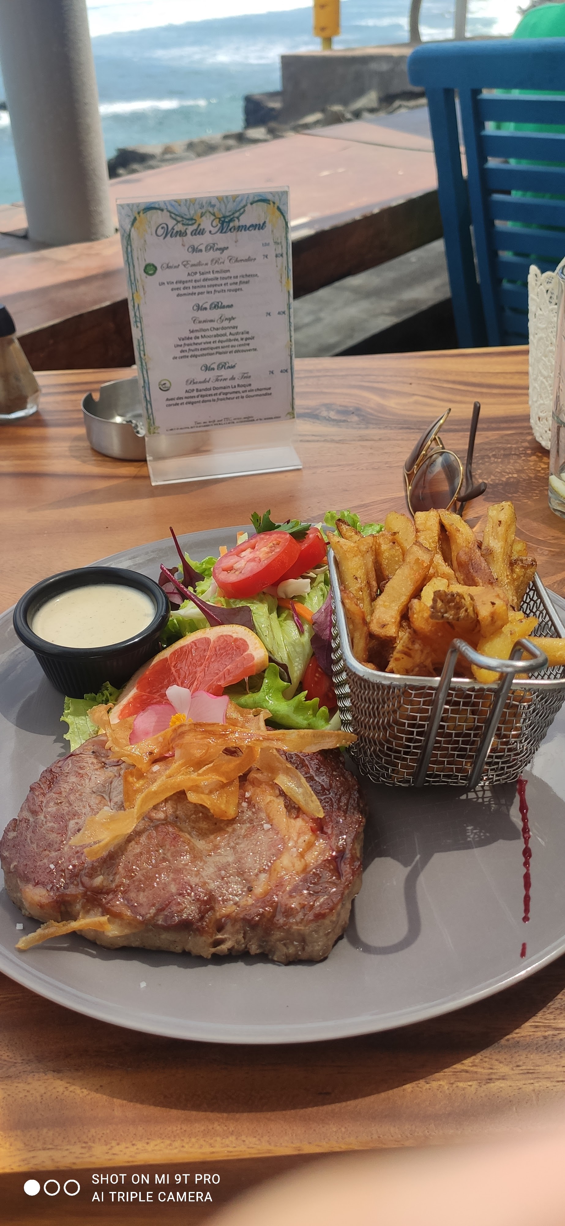C est mon lieu de respiration ! A un saut de l ambiance urbaine dionysienne, une parenthèse de choix avec une vue splendide sur le camaïeu de notre magnifique océan. On se detend. Ont ils changé de cuisinier récemment ? J ai trouvé ca bon, mais sans plus. Dommage !
