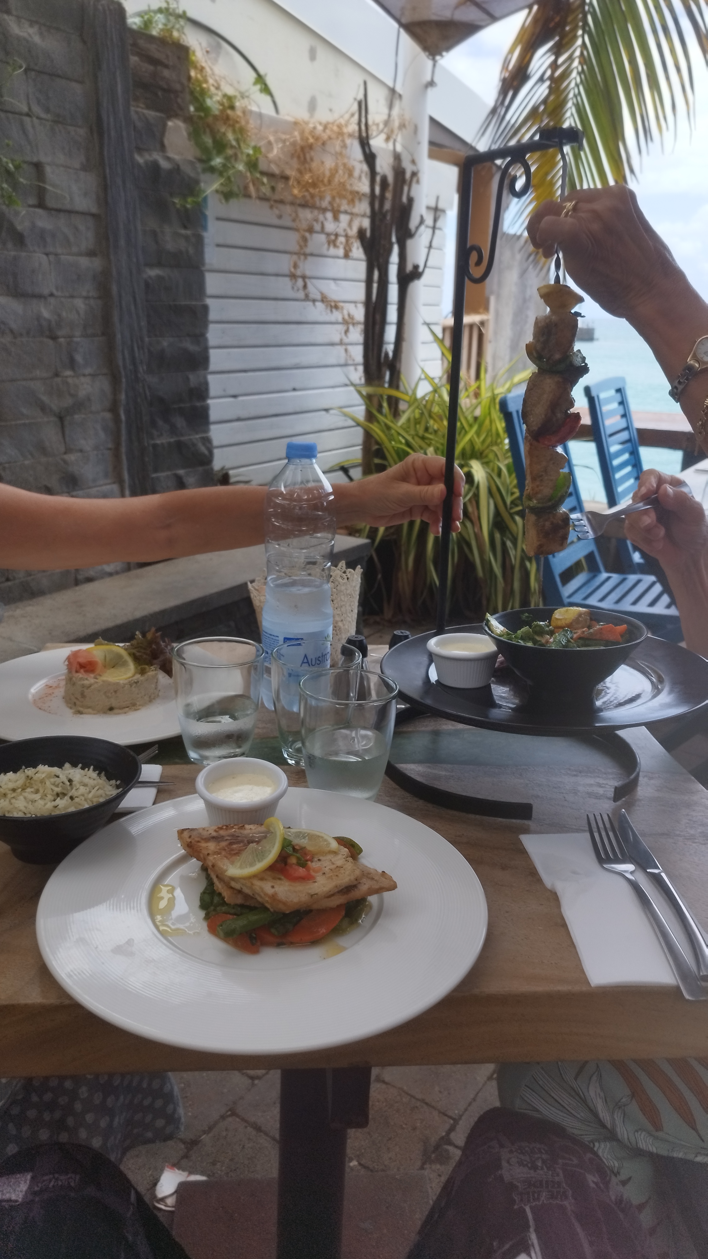Parfait. Emplacement exceptionnel avec une vue magnifique sur les roches noirs. Tellement bien placé qu'on pourrait s'imaginer un pièges à touristes comme il y en a tant . et bien là pas du tout service souriant et efficace salade avec des produits frais (poisson ) gourmande et copieuse, tartare de poisson excellent, brochette tandoori très bonne. Nous avons pu manger sans réserver mais à mon avis mieux vaut penser à réserver. nous reviendrons ....