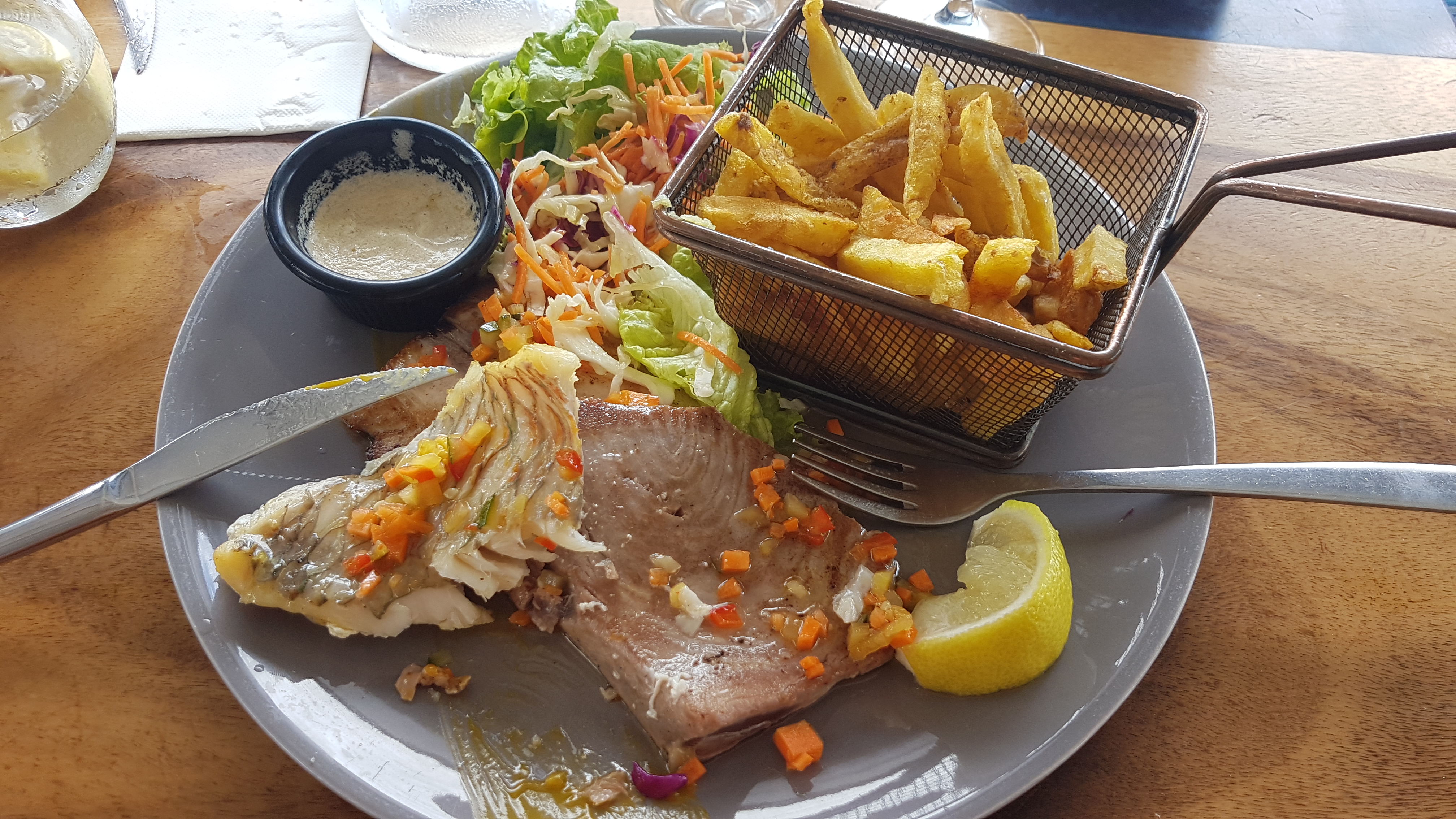 Au bord de l océan avec une brise légère peu de fréquentation quoi de mieux? Un bon repas.