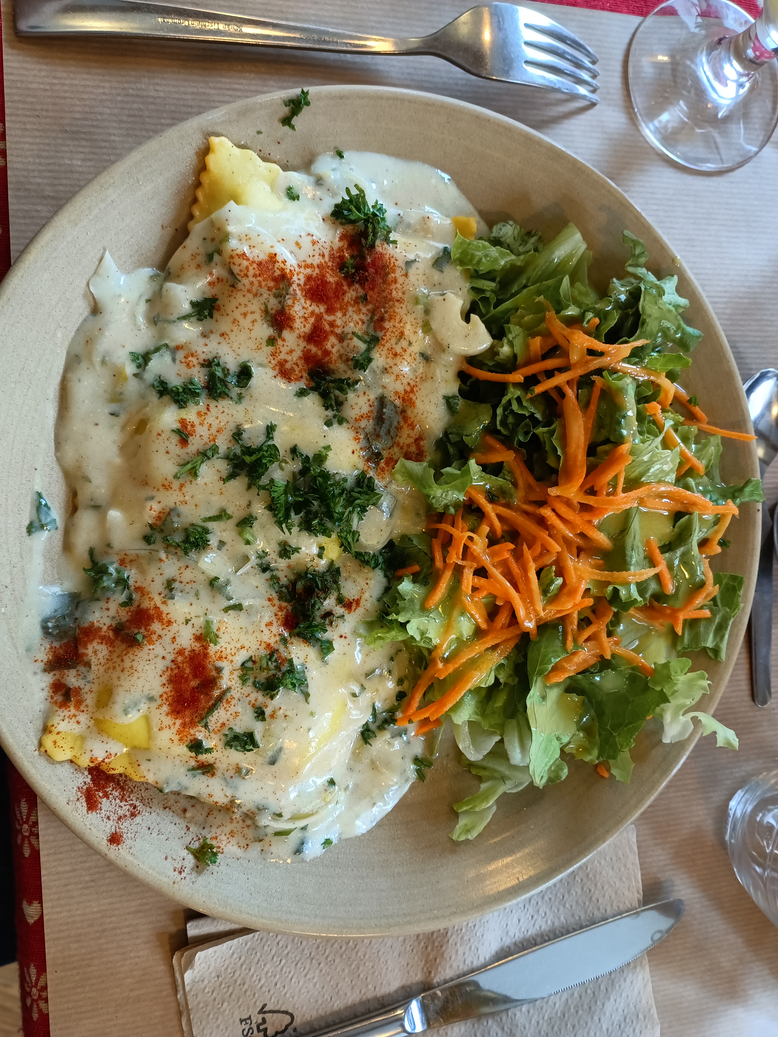 Une première les tartes flambées végétariennes, et on a validé ! Les serveuses sont souriantes, c’était vraiment agréable d’être ici !