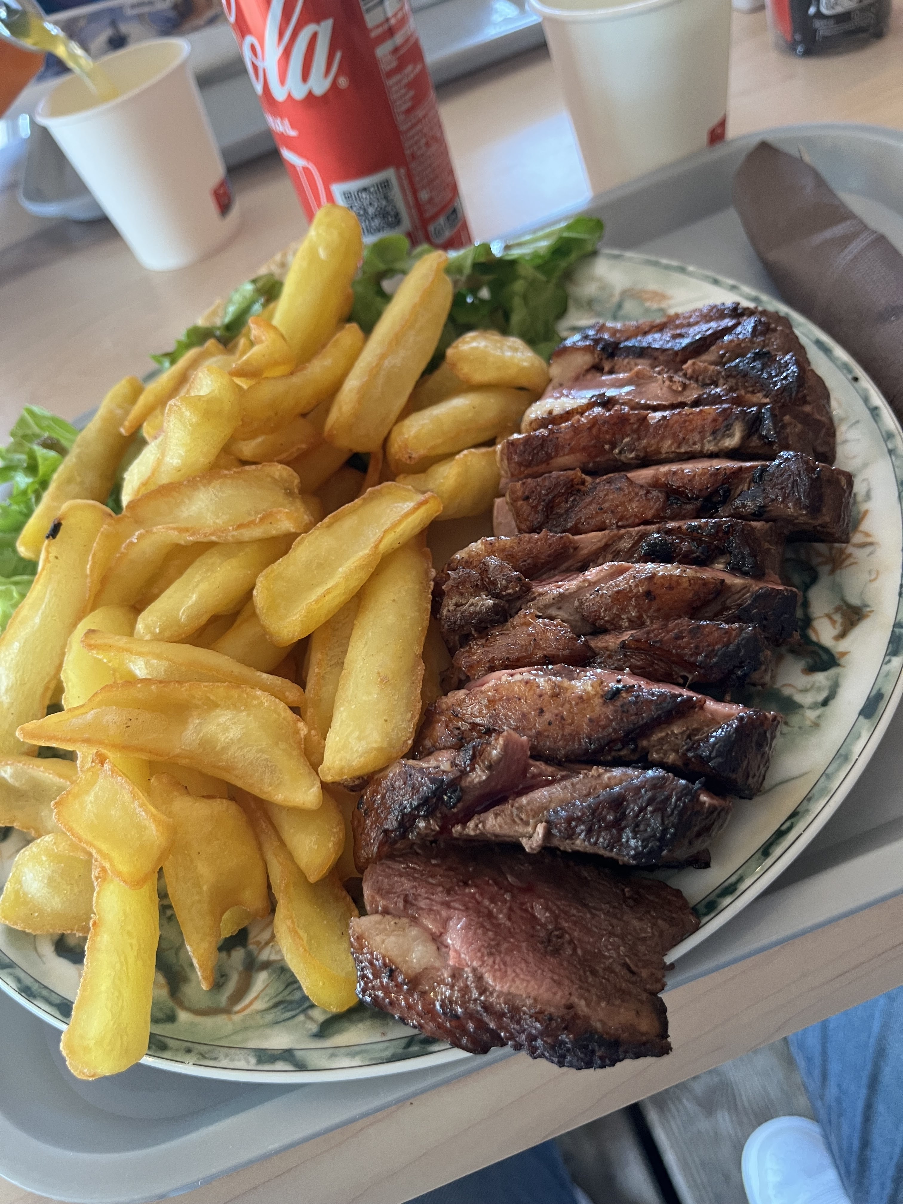 Top, magret de canard en entier dans l'assiette avec petite croûte de sel, frites maison. . Je recommande, et en plus à un prix raisonnable