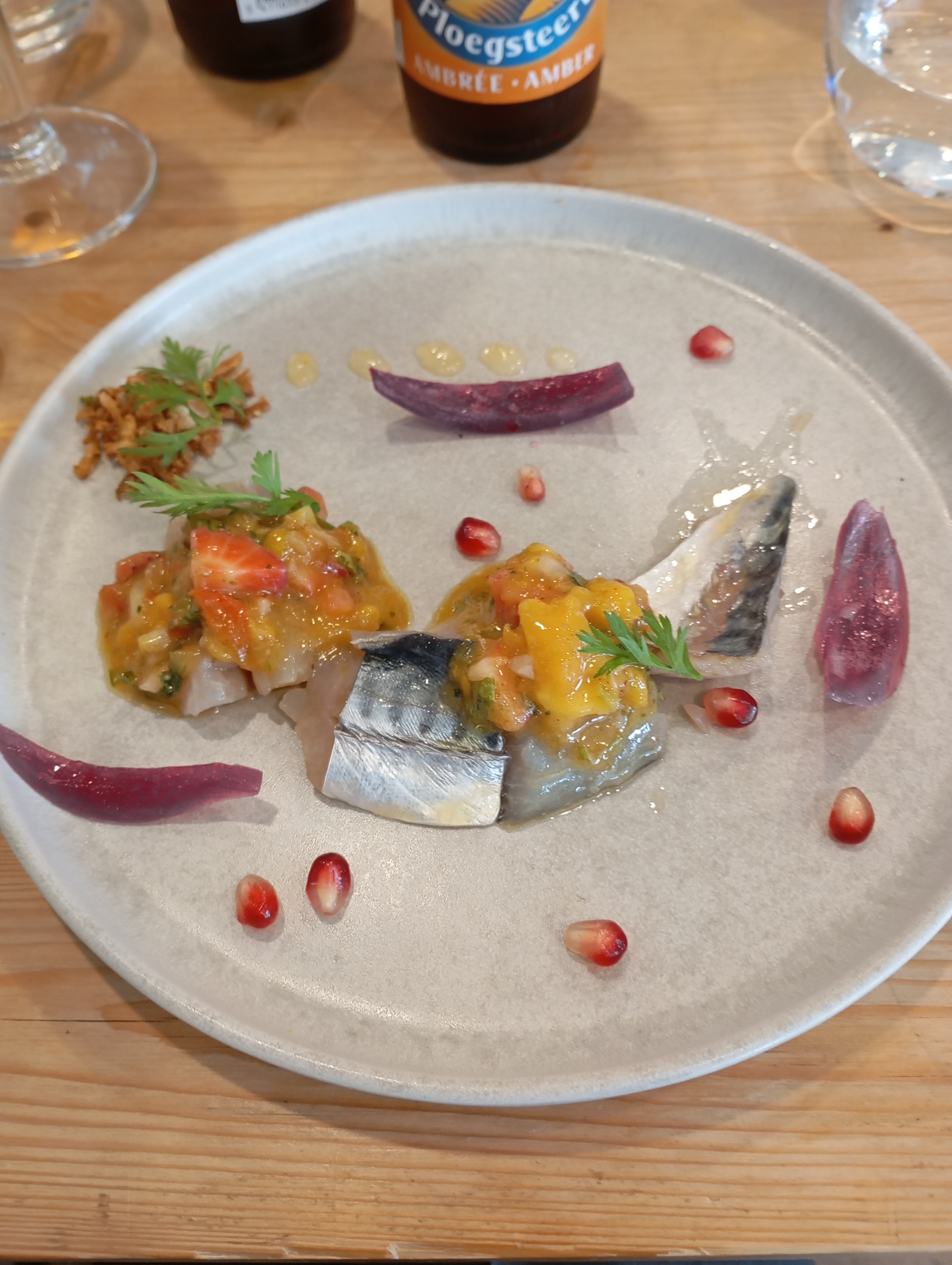 Poisson ultra frais tout droit sorti de la criée. Rillettes et tartares délicieux. Plats combinant le savoir-faire et l’originalité. Les menus changent régulièrement en fonction des arrivages. Les propriétaires et le cuisinier sont toujours en quête de recettes intrigantes et novatrices tout en préservant le naturel et la simplicité. Service chaleureux. Nous y retournerons avec plaisir.