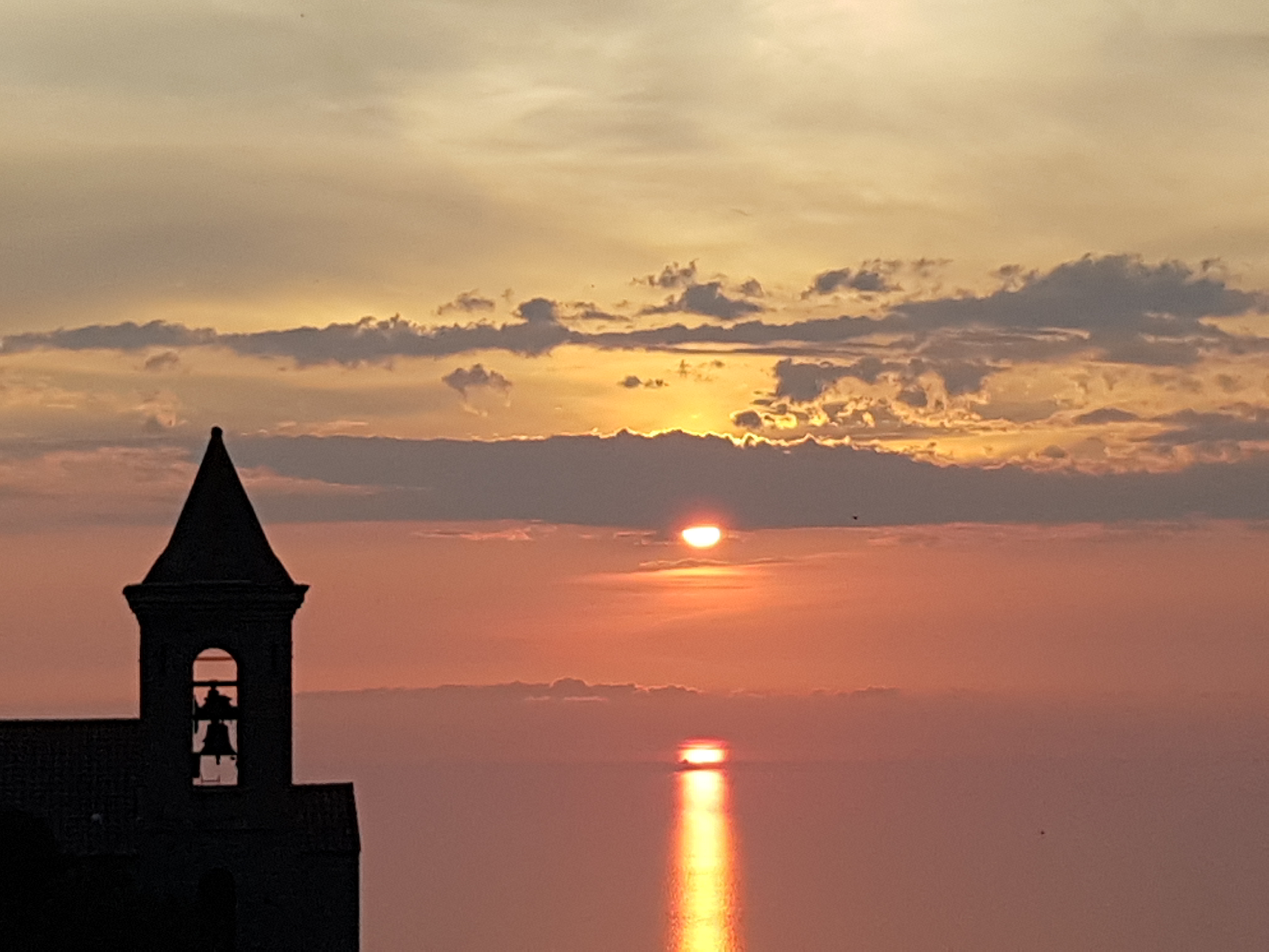 Quel bonheur que cette étape avec un peu de recul sur l'effervescence de la côte... Une vue imprenable sur la mer et la charmante église du village, un service rapide et souriant, et enfin un régal, pour moins cher que sur la côte ! On y reviendra c'est sûr !