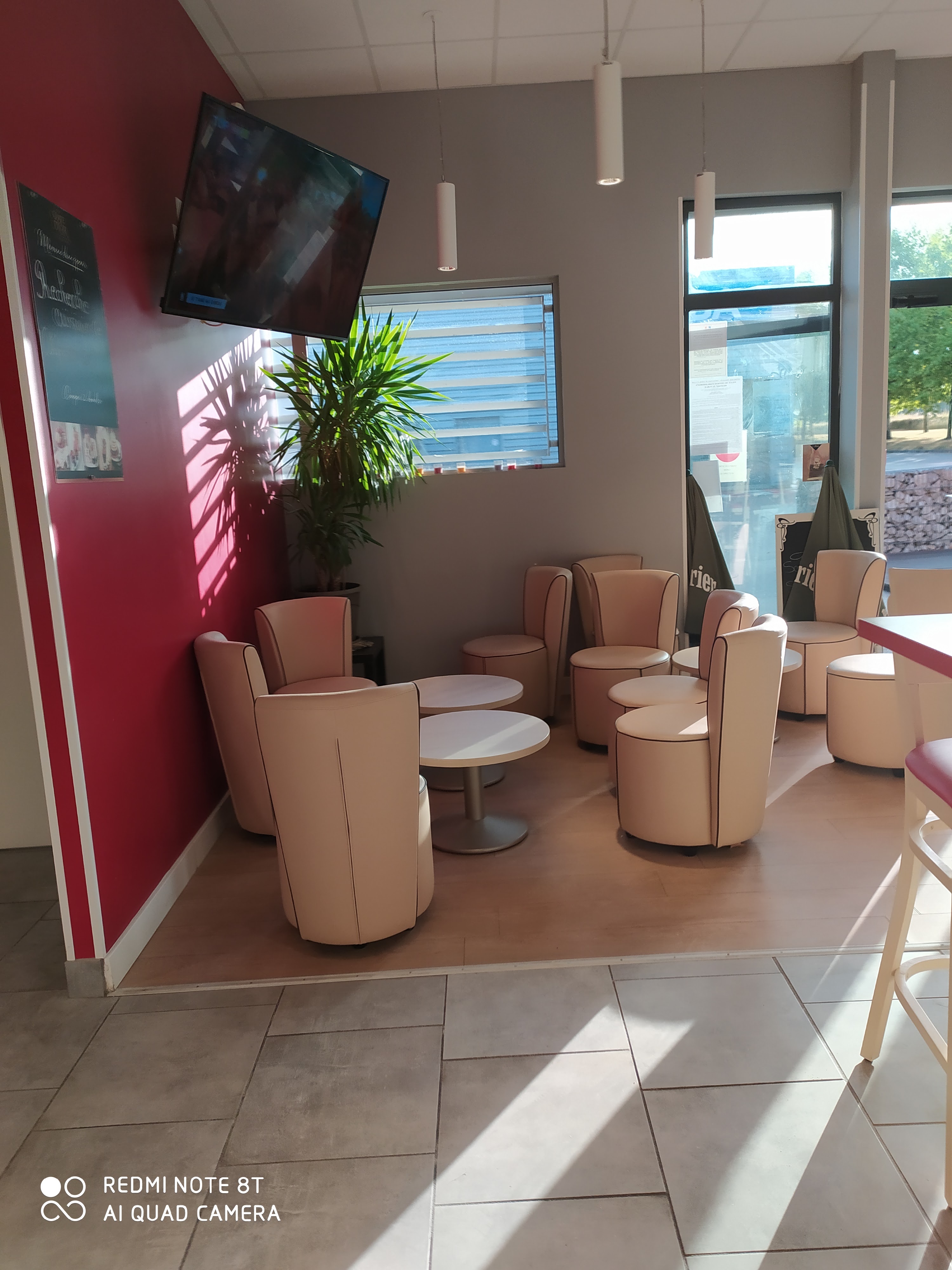 Établissement convivial ou l ont trouve de la restauration rapide et d autre services comme la boulangerie et la patisserie les trois services sont tous un points forts tous est fabriquée sur place et artisanalement produit de qualités