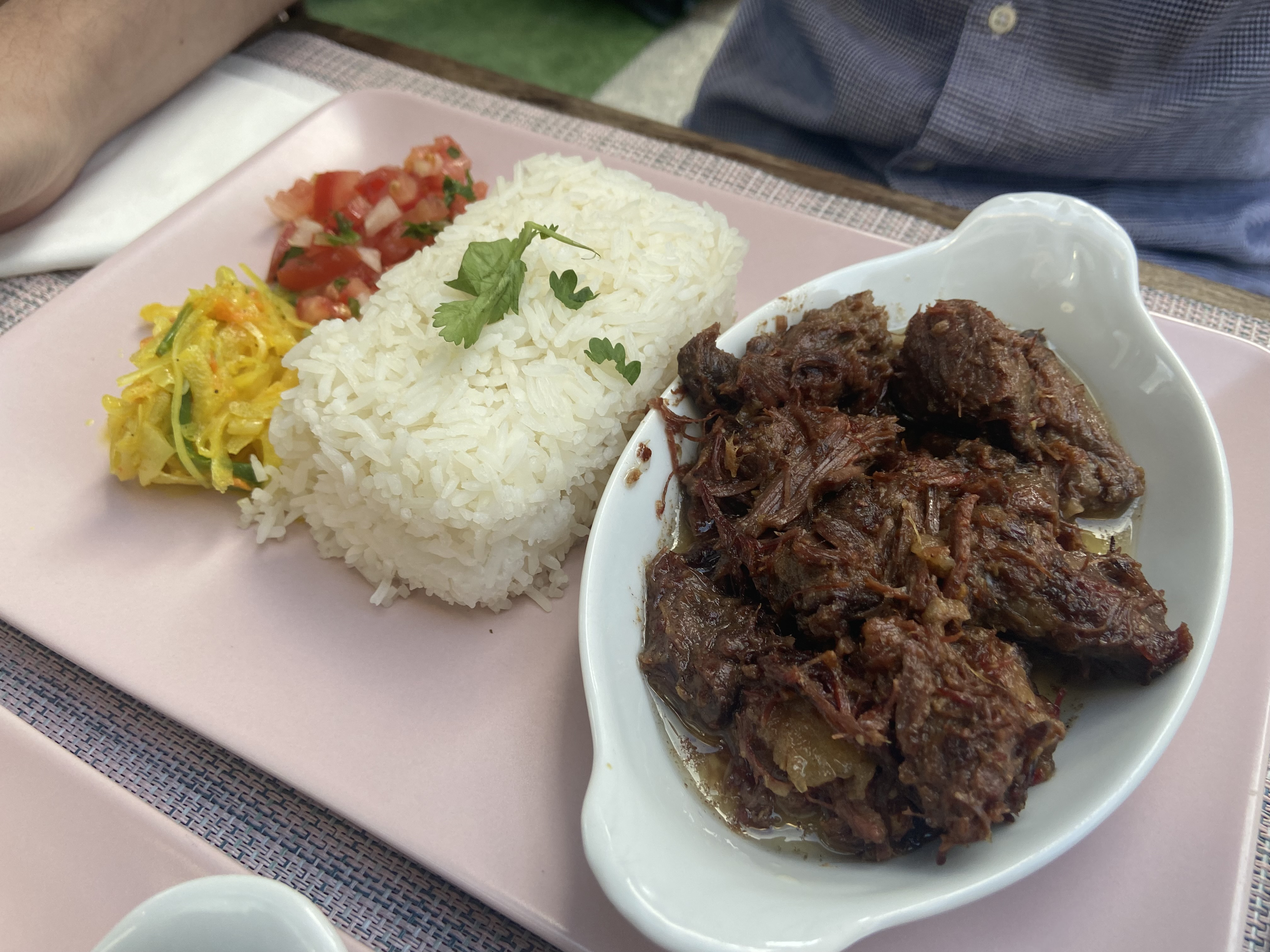 Très bon Ravitoto et poulet au Coco. Juste un peu plus de ravitoto aurait été parfait.