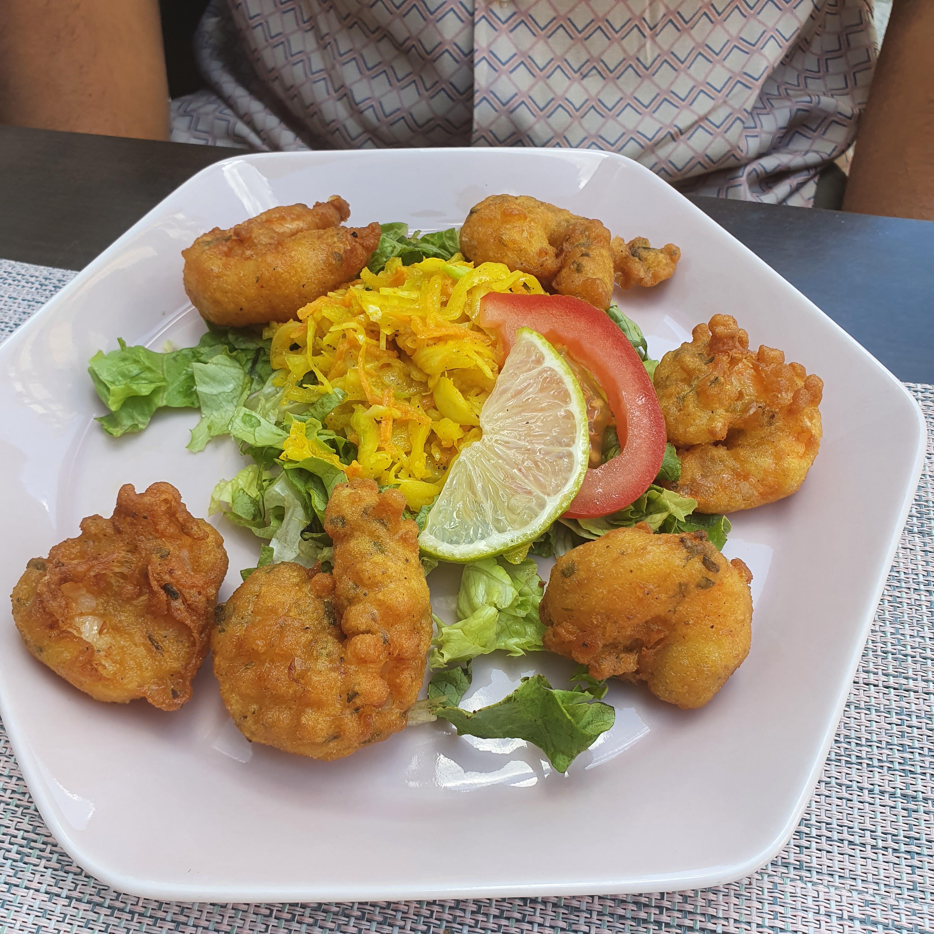 Nouvelle découverte dans le quartier, l'accueil des propriétaires est très chaleureux. La cuisine est très bonne et le service se fait dans de très bonnes conditions. Choix du menu du jour : acras de morue en entrée (excellent) et crevettes coco. Le tout servis avec des petits condiments (sauce piquante / salade de tomates à la citronnelle). Petit digestif en fin de repas gentillement offert par le propriétaire : un rhum arrangé maison ! Possibilité de déjeuner en terrasse et bientôt livraison disponible dans le quartier. Je recommande chaleureusement !