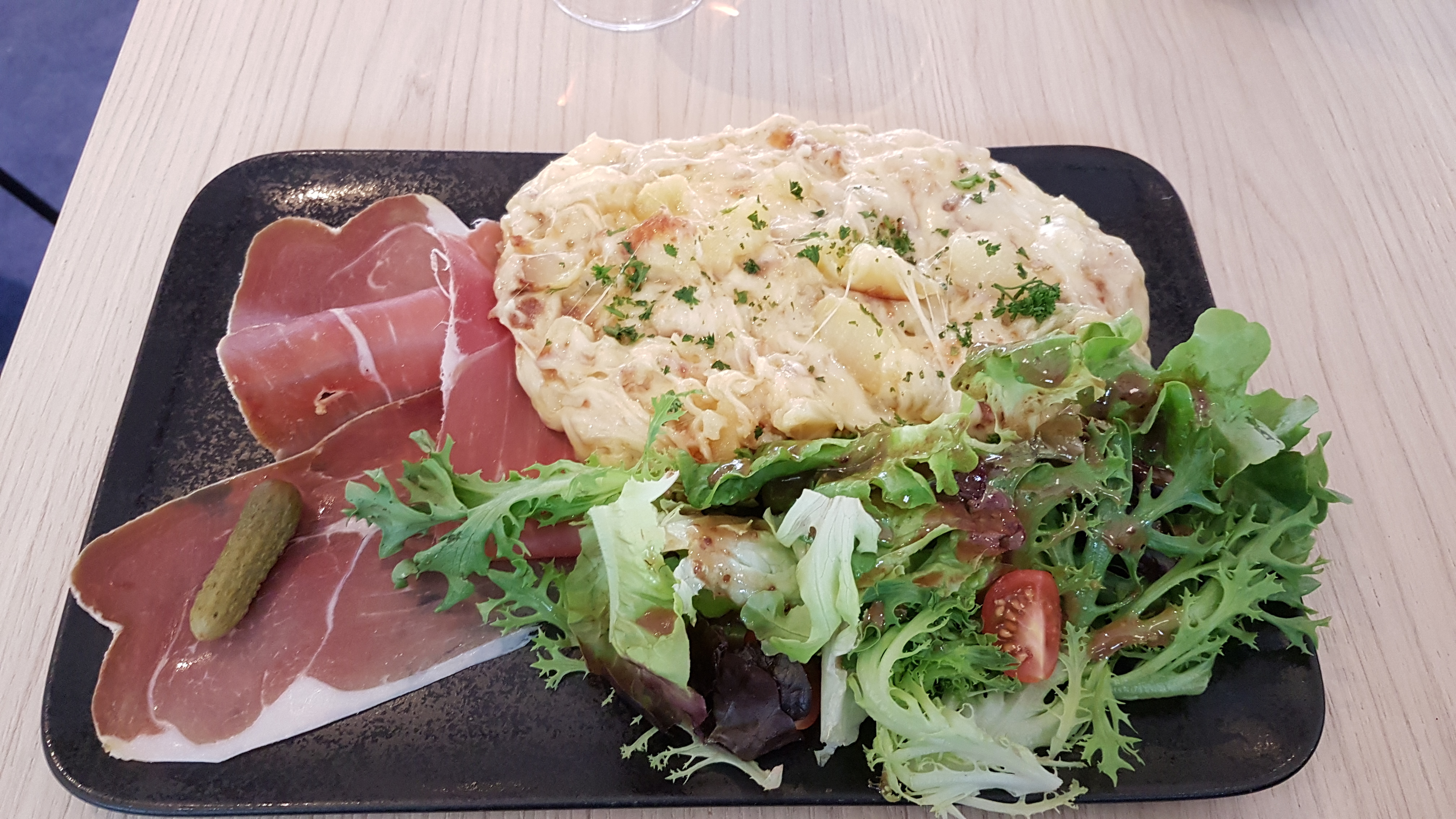 Pendant un week-end en amoureux nous avons décidé de manger au restaurant le soir. Nous avons commandé un verre mais meme pas le temps de le boire que les plats étaient déjà devant nous et en plus froid. Mon compagnon a pris un burger, il était froid et la cuisson de la viande n’était pas bonne. De plus la taille du burger et l’élaboration ne sont pas compatibles avec le prix excessif. Pour ma part j’ai pris une truffade, plutôt bonne mais le petit bout de jambon sec et les 3 feuilles de salade ne suffisent pas pour un plat comme celui-la. Je ne vous déconseille pas ce restaurant mais le rapport qualité / prix, pour moi, n’est pas bon (trop cher pour ce que c’est)