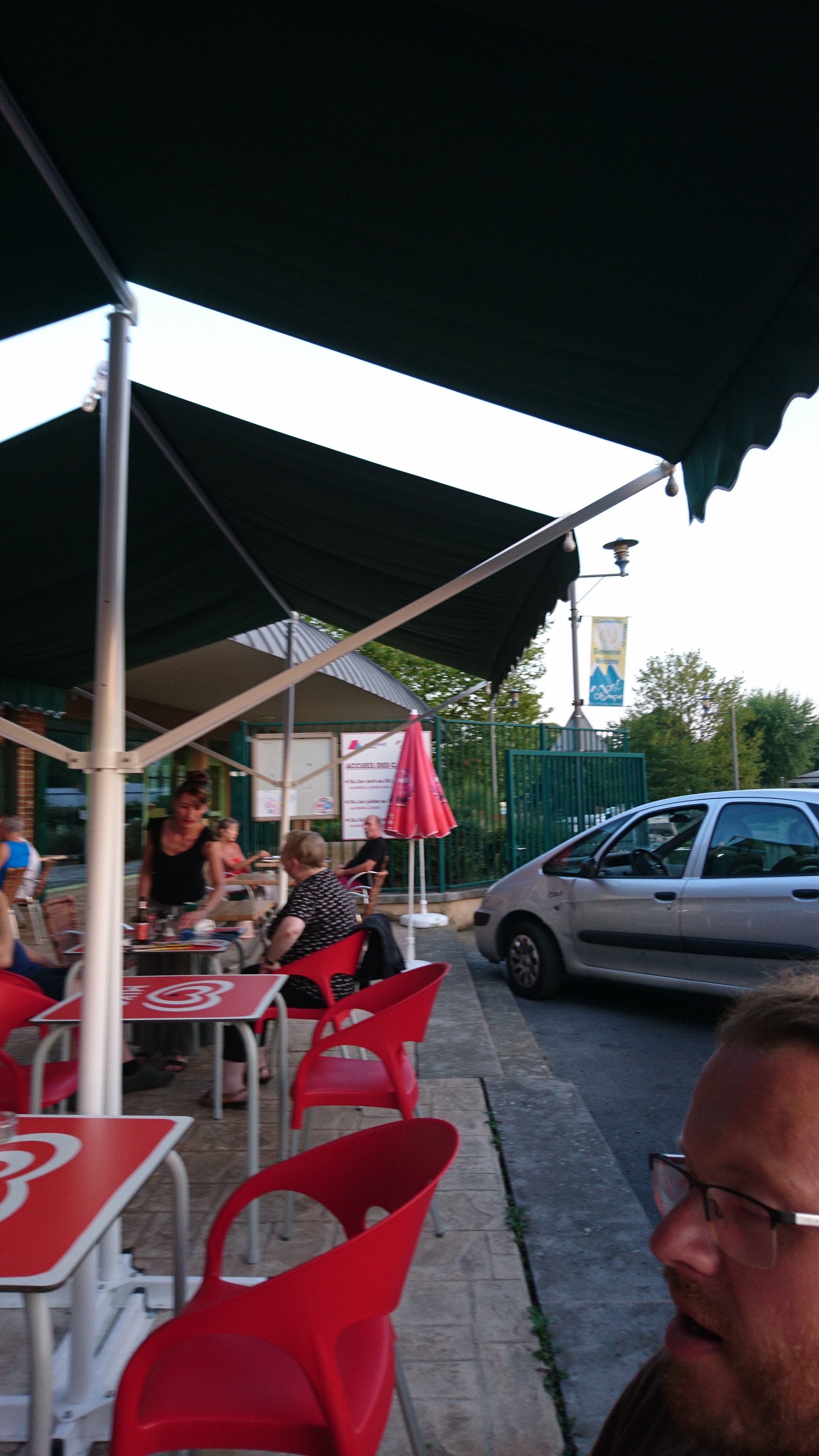 Accueil nul. Personnel semblant s'occuper des clients à regrets . Limite impoli. A accepter de nous prêter un menu pour faire notre choix , en faisant bien comprendre qu'on les faisait c.... et qu'il fallait le rendre. C'est vrai que nous logions à environ 20 mètres en camping car. Seul point positif nous n'avons pas été malade .