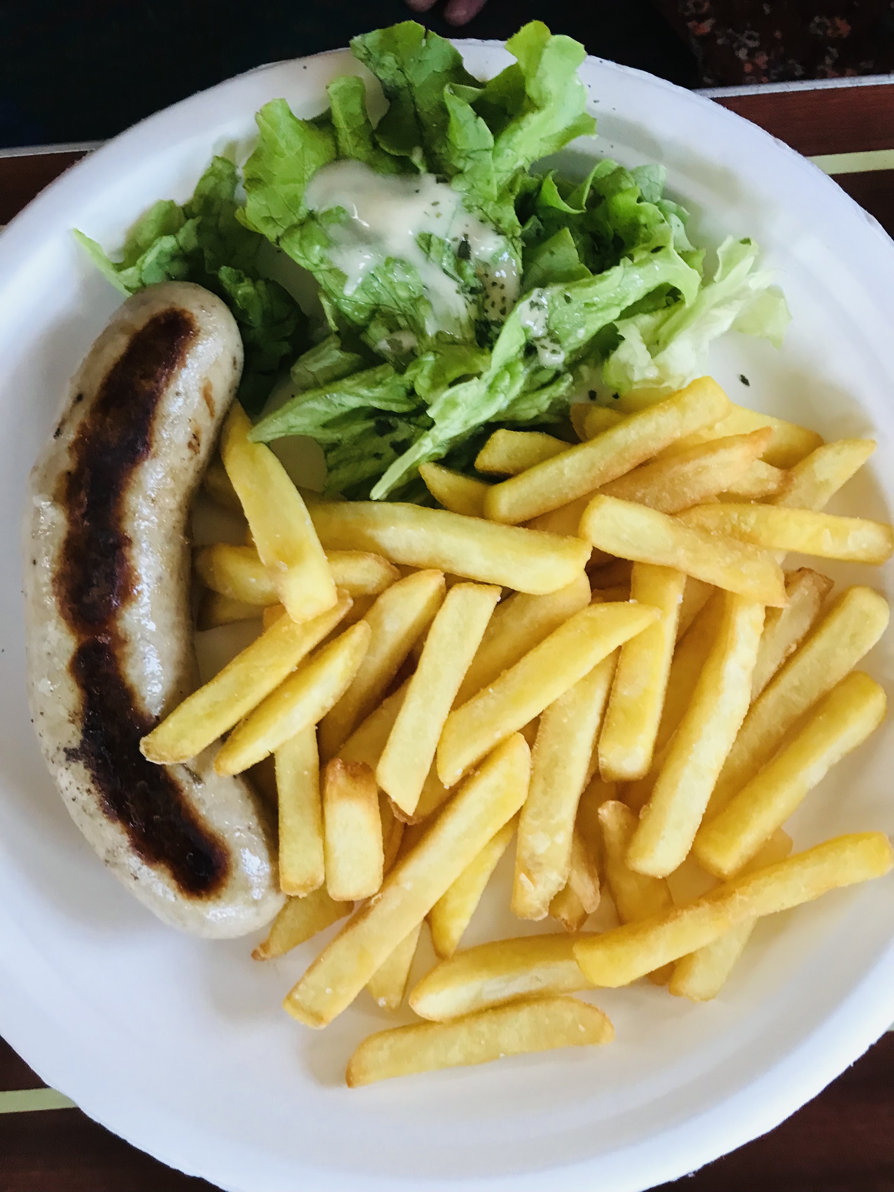 Une étoile car on ne peut pas mettre zéro. Cuisto aimable comme une porte de prison. D’ailleurs, vu la qualité de sa communication et son comportement, c’est à se demander s’il ne vient pas d’en sortir. Il se demande même ce que vous lui voulez en venant au « resto ». Et bien manger pardis !! Bref, soyez un habitué et surtout pas un campeur ou un bateau de passage. Finalement, vu le comportement du cuisto, nous annulons la commande resto pour prendre au snack. Nous devions commander au resto à emporter. Frites Carrefour surgelées. Manipulation des aliments à mains nues. Salades qui restent 20 minutes sur le comptoir à l’air libre. Serveuses sans masques. Mais sympathiques (c’est la base). Vu qu’il y avait 6 clients avant nous et qu’il fait les commandes les unes après les autres, le temps d’attente est DÉMENTIEL !! Comptez une heure. Résultat? Frites surgelé mal cuites. Assiettes minuscules. Fricandelles mal cuites. Bref à vomir!!! PAN 34€ !!!! Voir photos A éviter. Il y a des fast-foods à proximité. Mise à jour: sur 6 personnes 3 ont été malade cette nuit.