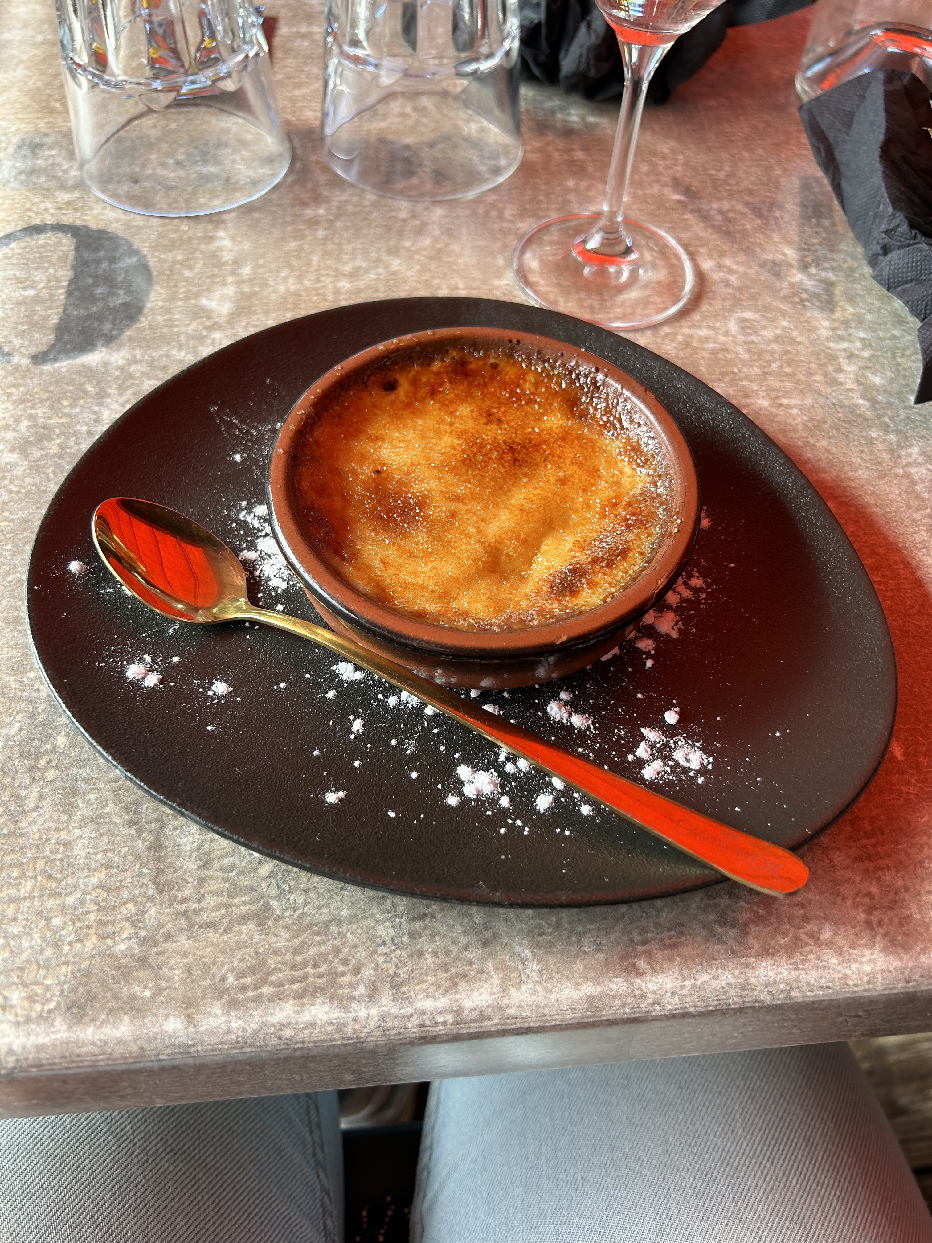 Très satisfaits de notre passage dans ce restaurant ! Service top!! Pas d'attente, malgré beaucoup de monde pour ces vacances ! Bravo pour les serveurs !! Ambiance très joyeuse avec les interventions musicales du patron !! C'est un petit rien, mais tellement appréciable...Le café gourmand est excellent !!
