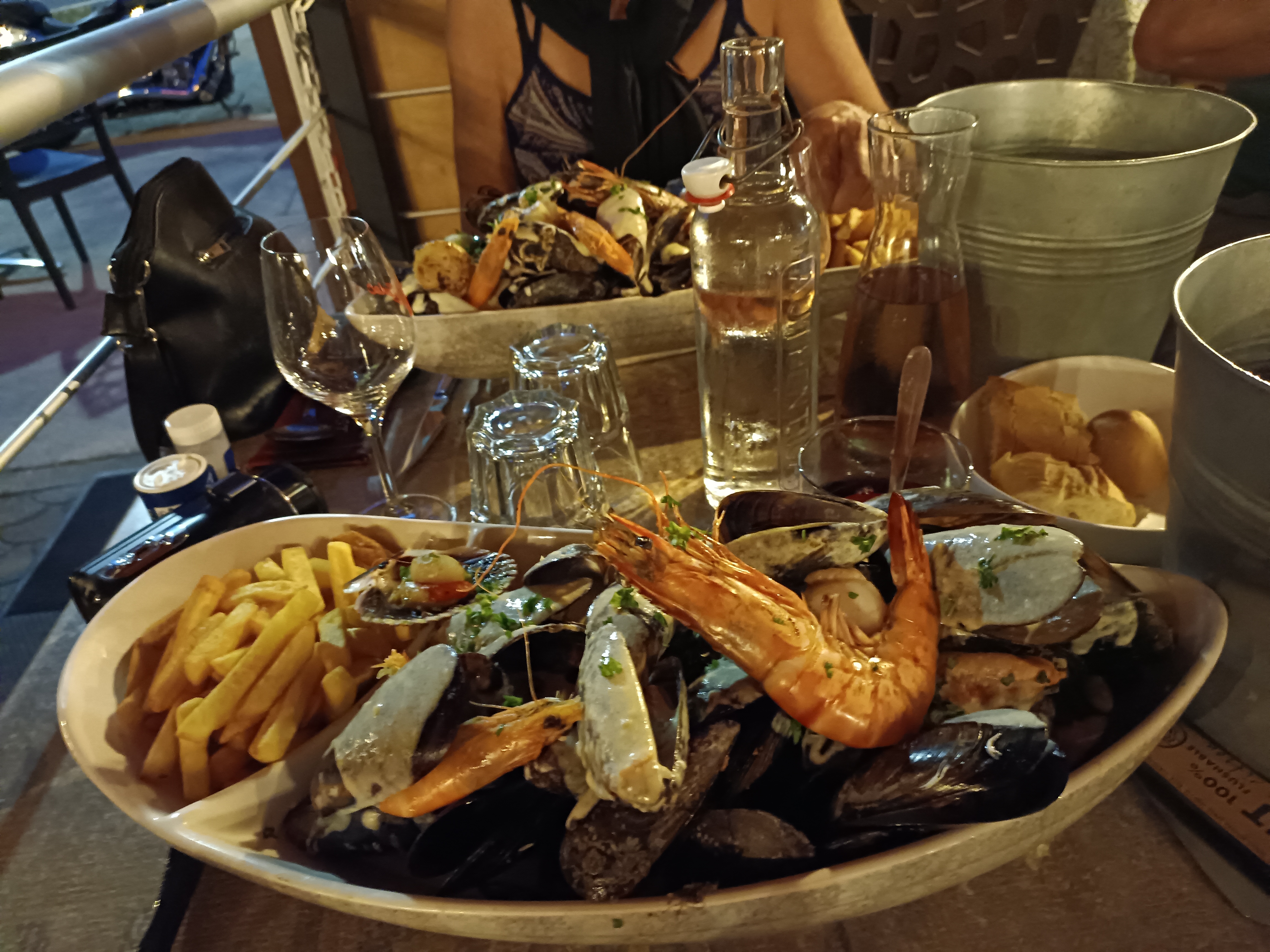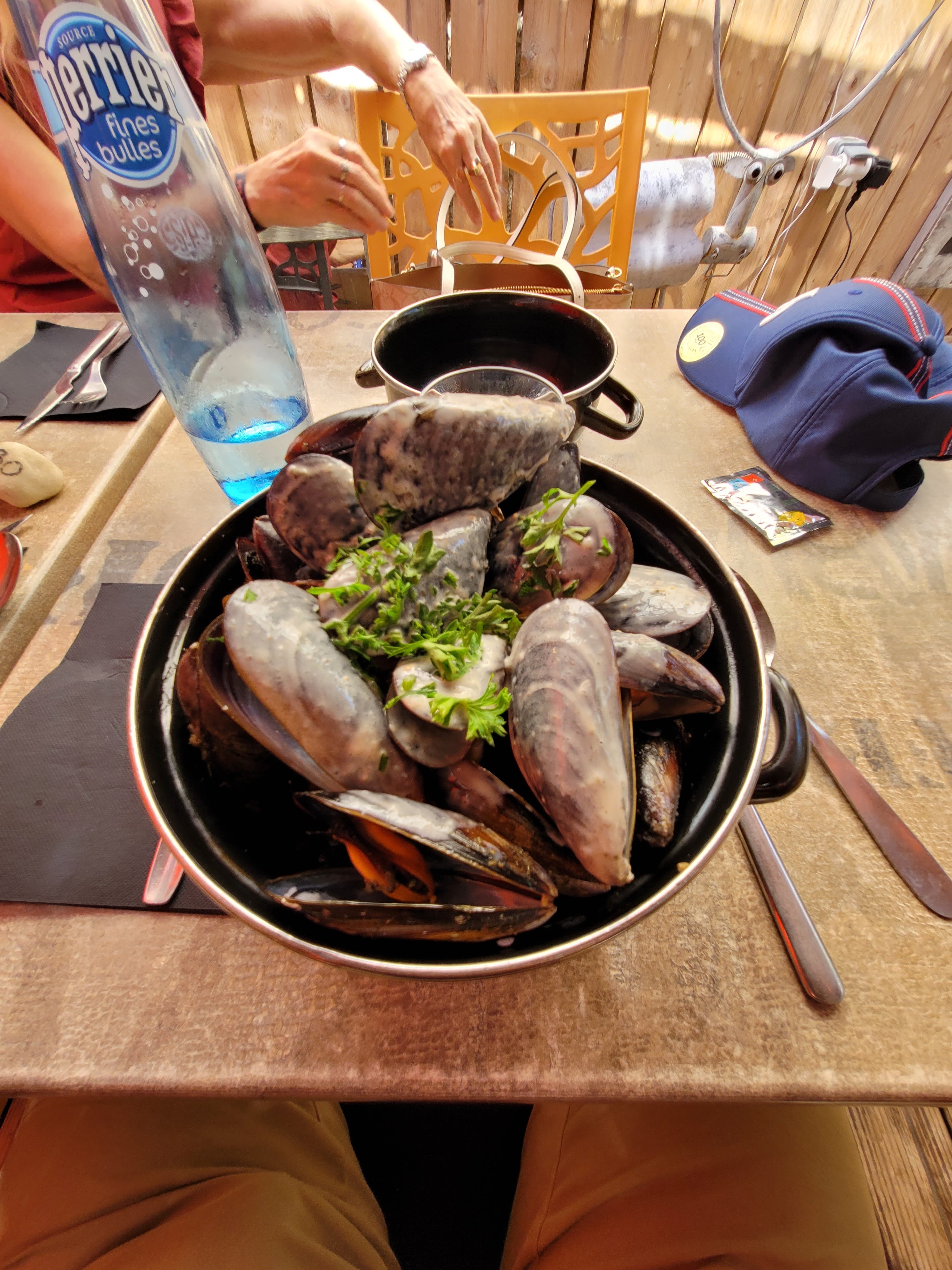 Les moules étaient très bonne, l'ensemble est correct, cependant nous étions placés à côté de l'enceinte de musique (moins d'un mètre) ce qui a rendu le repas un peu moins agréable même si le groupe de chanteur était bon.