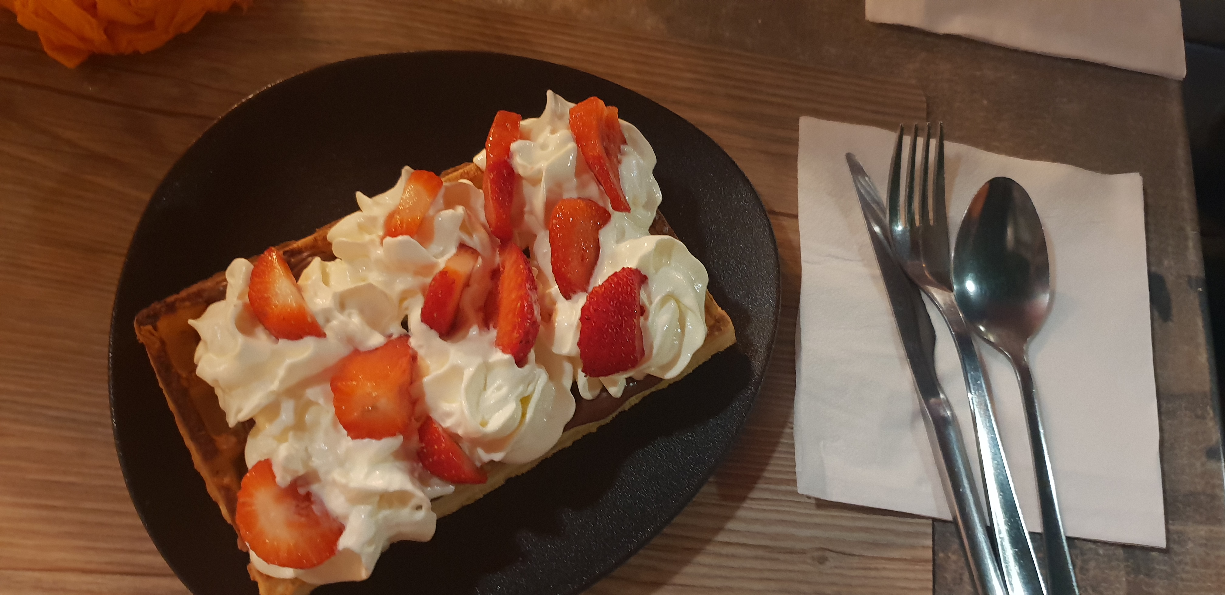 Bien mais pas le meilleure restaurant que j'ai fait. Service très rapide sans problème mais pas mal de coquilles de moules brisées qui croquaient sous la dent, sauce au fromage de chèvre pas très présent et quand j'ai demandé sur ma gauffre un supplément Nutella... surprise de 3.00euros ajoutés sur la note pour une cuillère de nutella au grand maximum... un peu déçu
