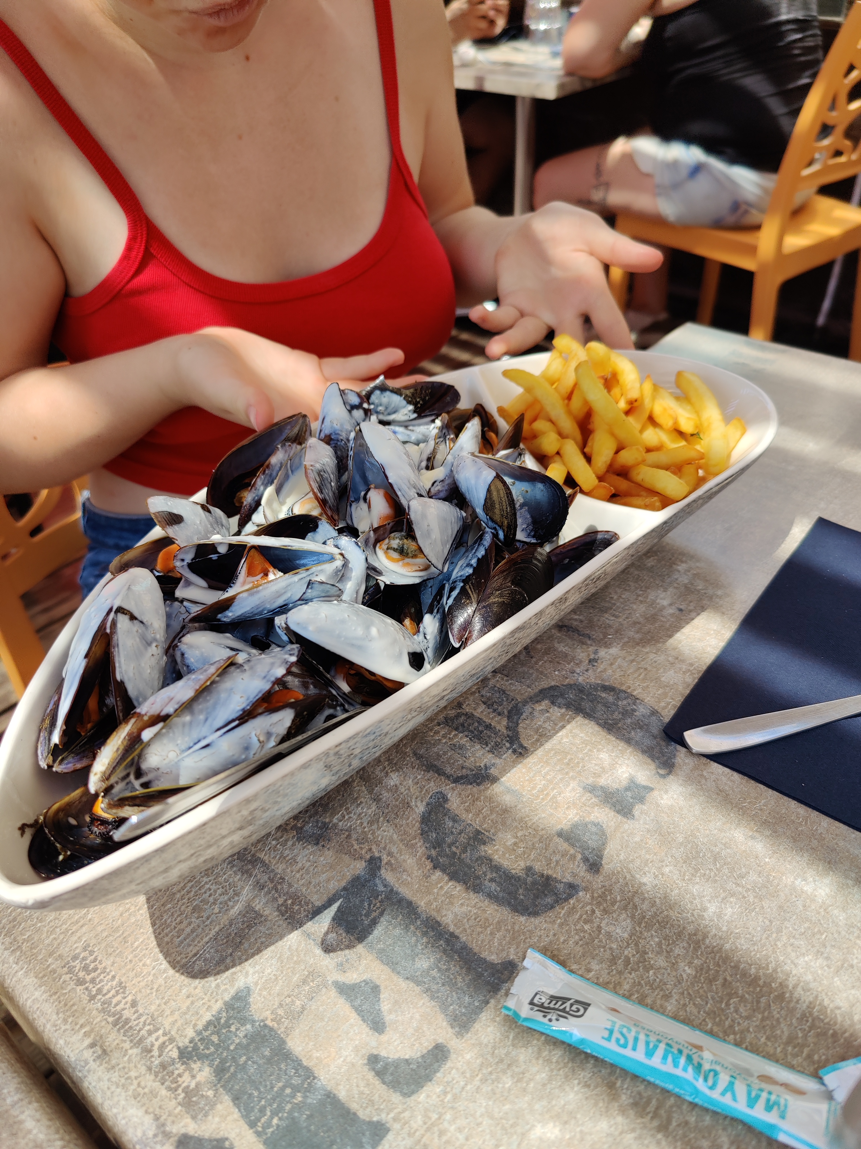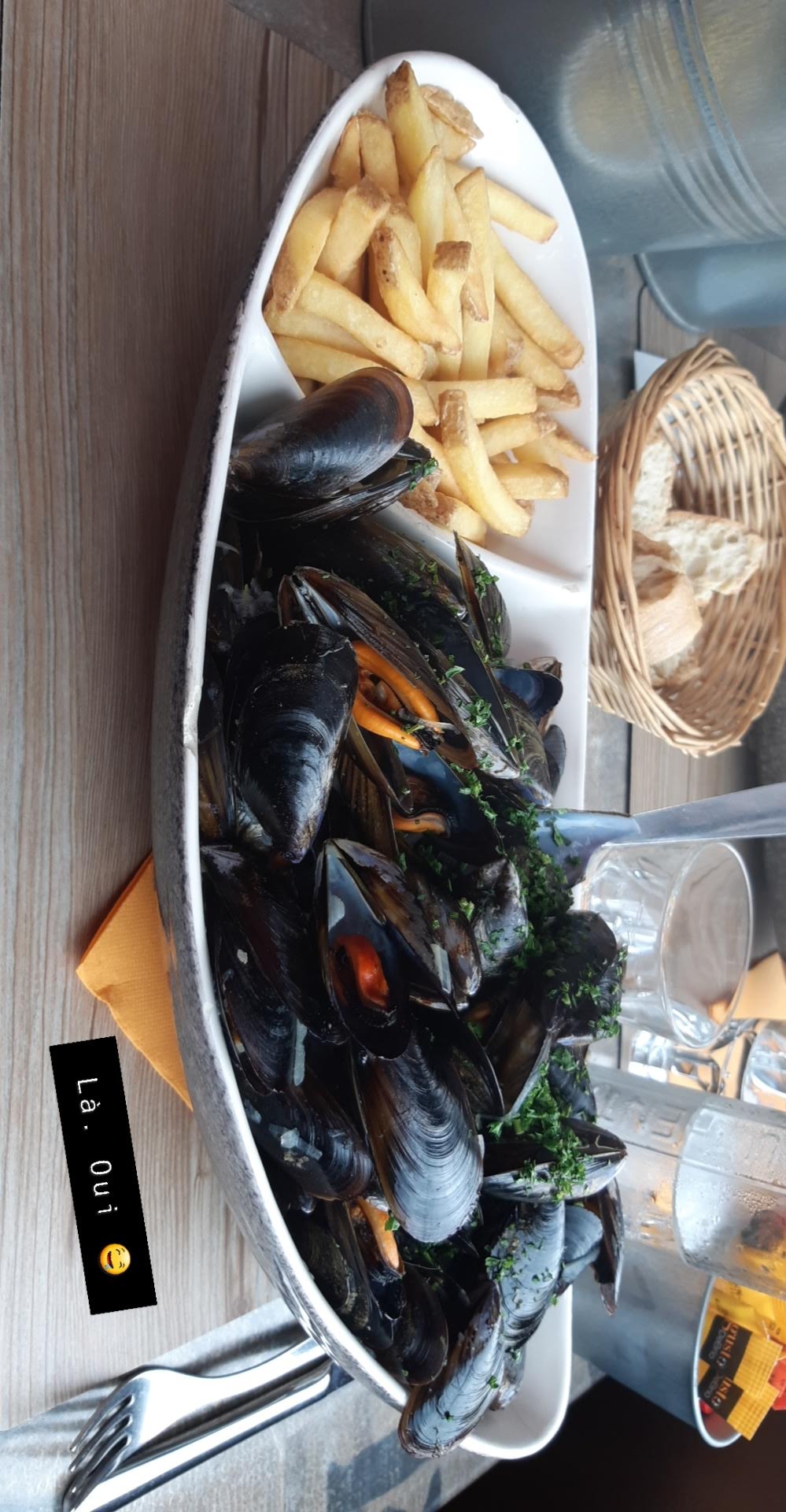 Moule pas laver encore avec des coquillages dessus, pleins de morceau de coquille! La plus part était vide! Cherchez l’erreur on n’est venu manger des moules pas des coquilles! Ensuite la serveuse avait une tenu qui n’est pas correcte dans ce genre de métier, ce n’est que mon opinion, y a de la t’attente, les frites on va pas s’étouffer, surtout quand c’est congeler. Bon courage dans votre restaurant.