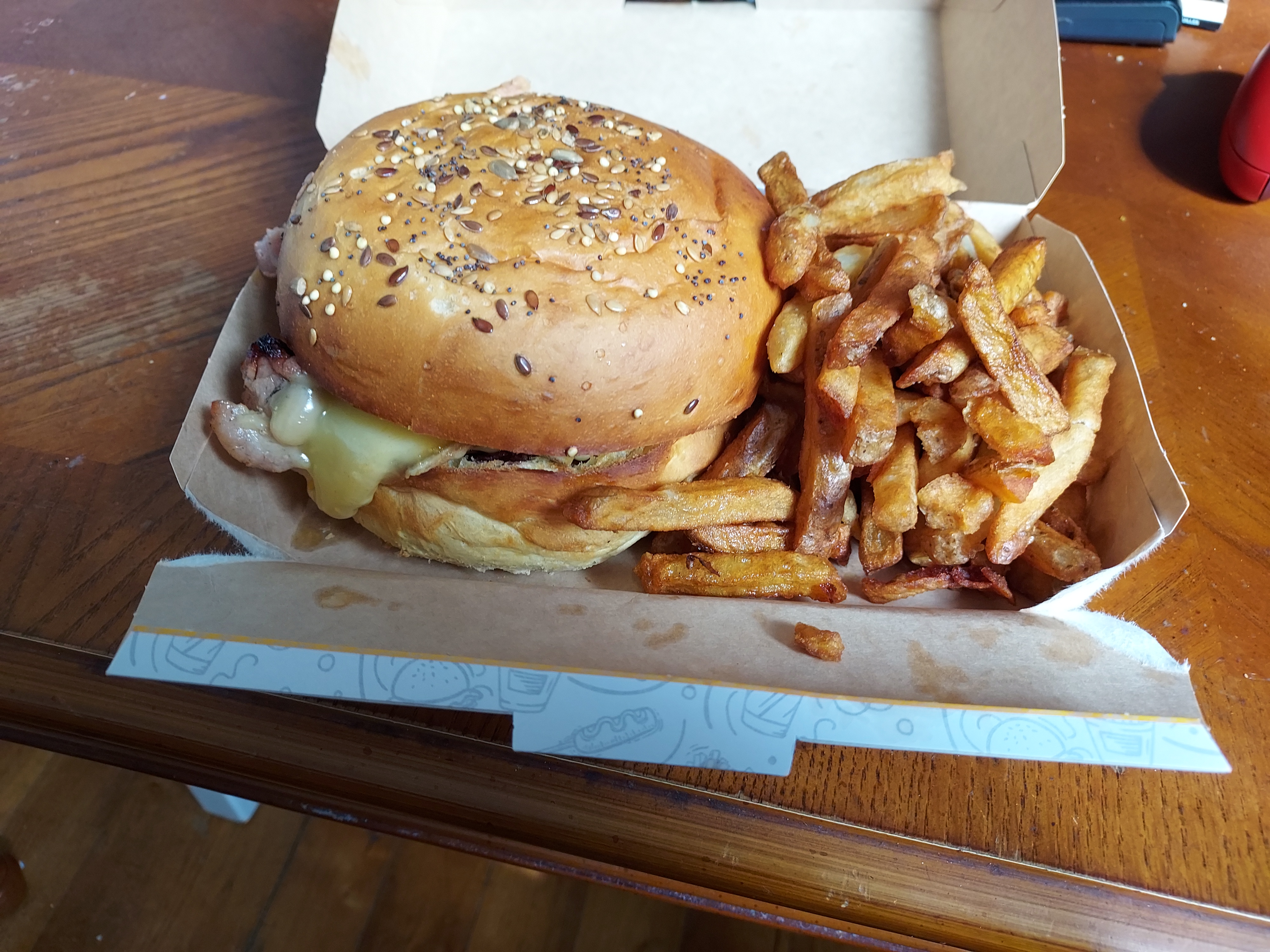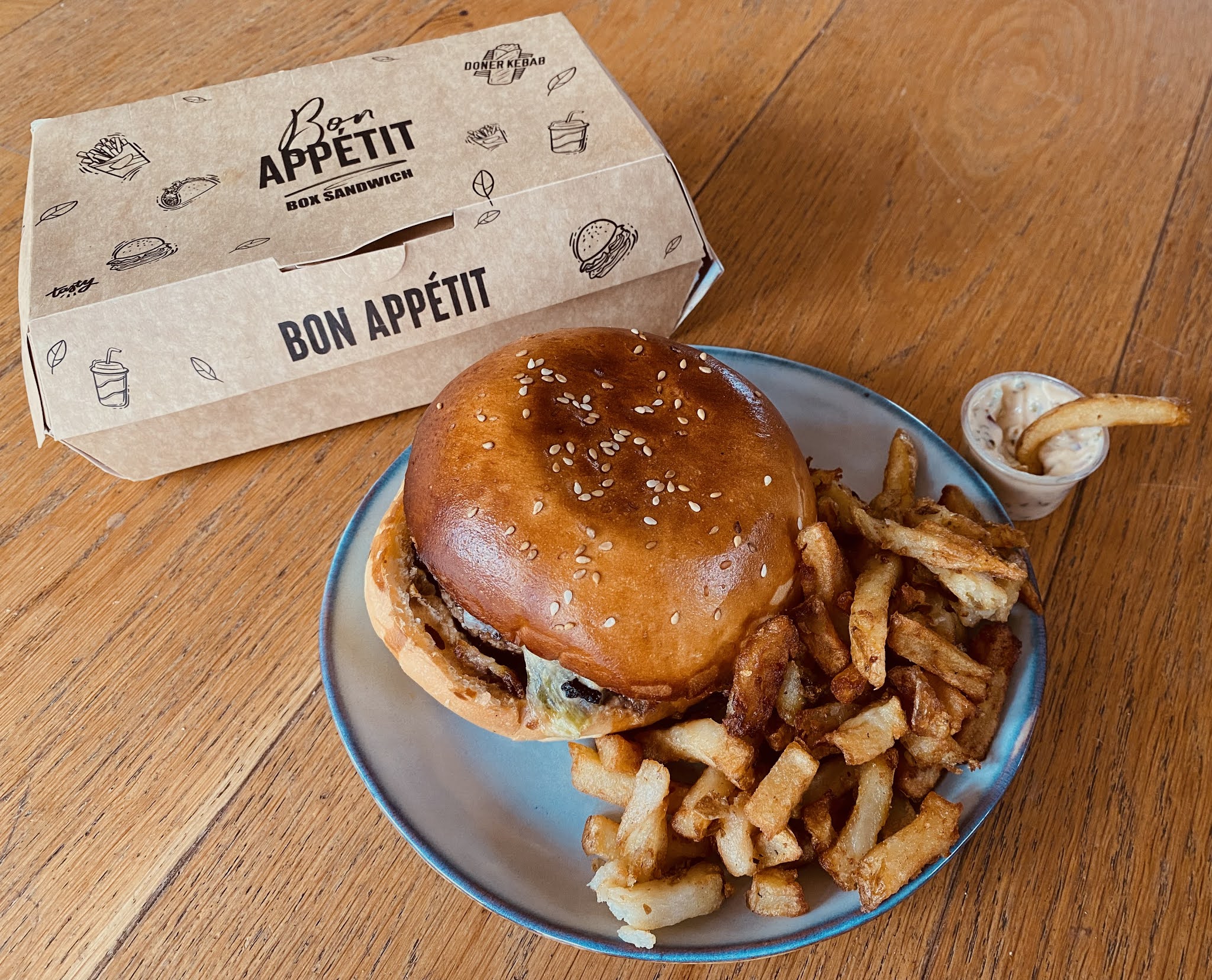 Bonsoir, j'ai pris a emporter se soir. Très qualifié, accueil sympa. J'ai appelé pour prendre a emporter, c'était prêt à l'heure. C'était chaud, portion généreuse. Juste un peu déçu car je n'aime pas le sucré salé, et j'ai pas fait attention qu'il y avait du confit d'oignons dans tout les burger. Donc en mangeant le goût sucré etait tres prononcé, sachant un peu le goût du burger. Et je suis pas très fan du pain brioché. Après c'était la première fois que je venais, je serai pour la prochaine fois je prendrai sans confit d'oignon. Je recommande, juste si comme moi vous n'aimez pas le sucré/salé. Enlever le confit. ☺️ Bonne soirée.