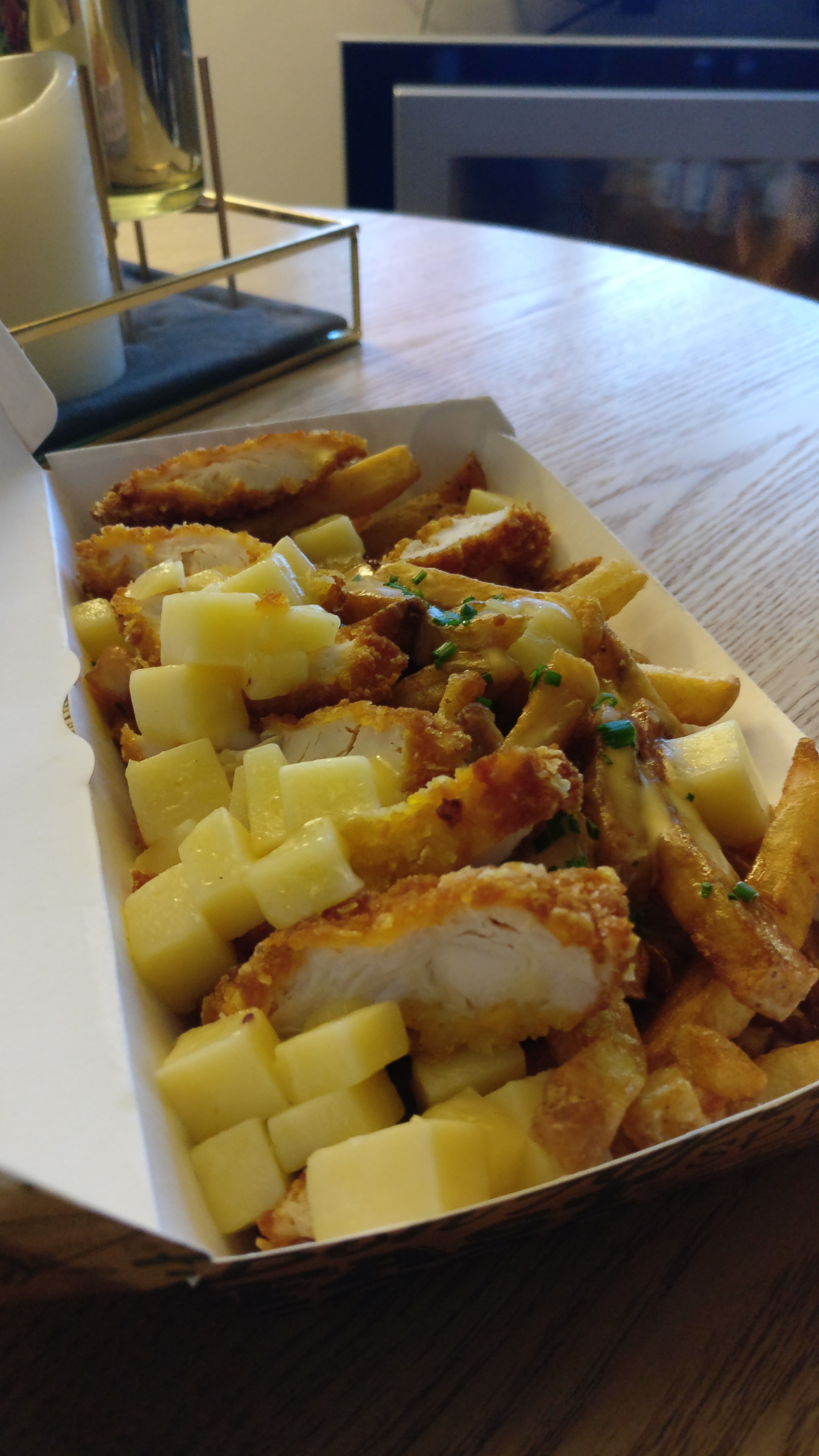 Globalement une mauvaise expérience... poutine chicken par 2, bouchées au fromage par 14, nuggets par 20 , frites par 2. Pas de sauce fournie !!! , je demande : il n y a que du ketchup. Le cuistot finit par me ramener 2 doses de Mayo. Pour 1 note de 52 euros , j avais un peu insisté. Bref perso je n ai rien trouvé bon à l exception des frites , assez molles mais qui tiennent plutot bien une fois réchauffées. Les nuggets pas bons du tout, les bouchées plutot moyen, poutines plutôt moyen sauvées par les frites. Je n y retournerai pas et je déconseille.