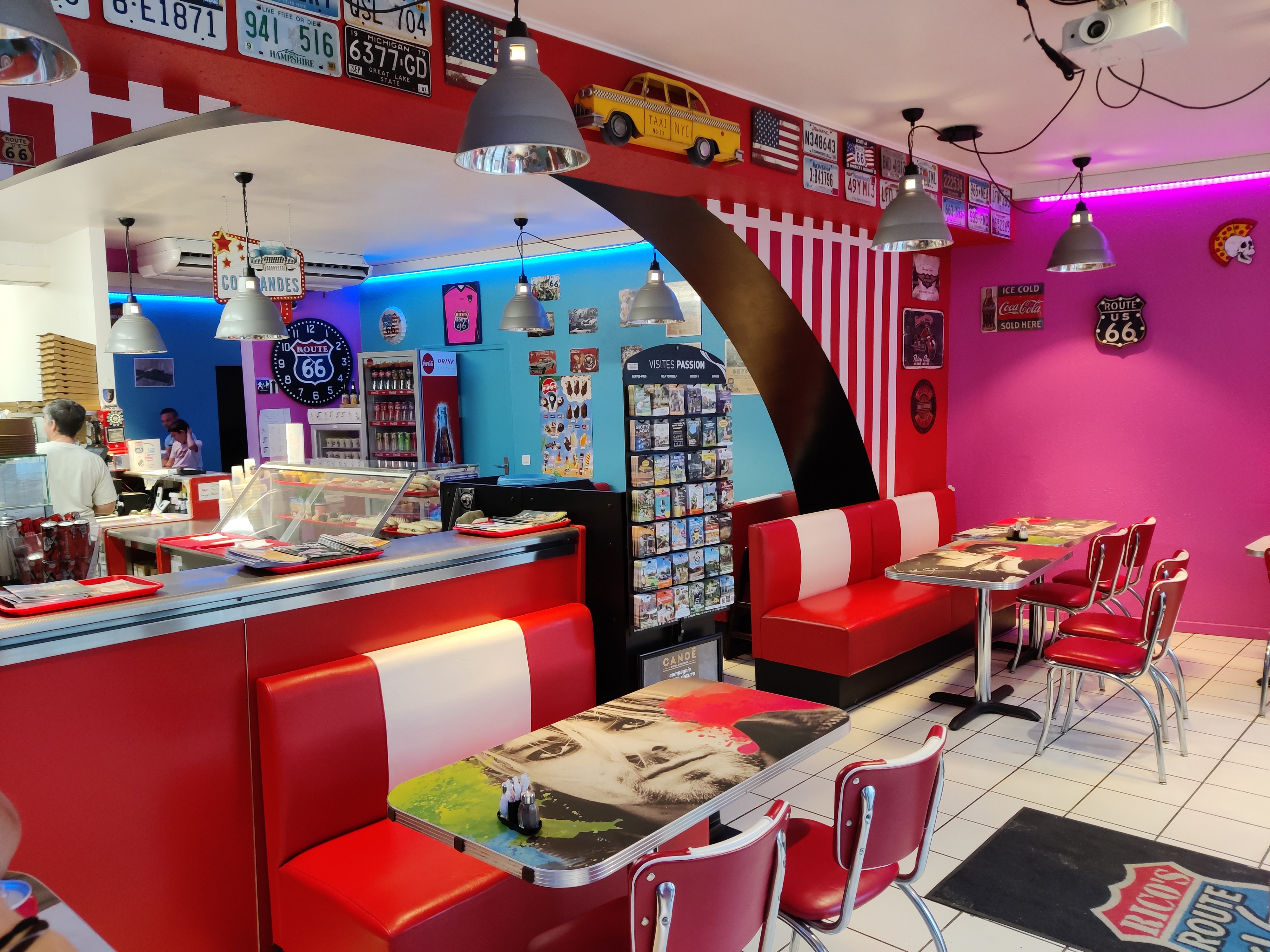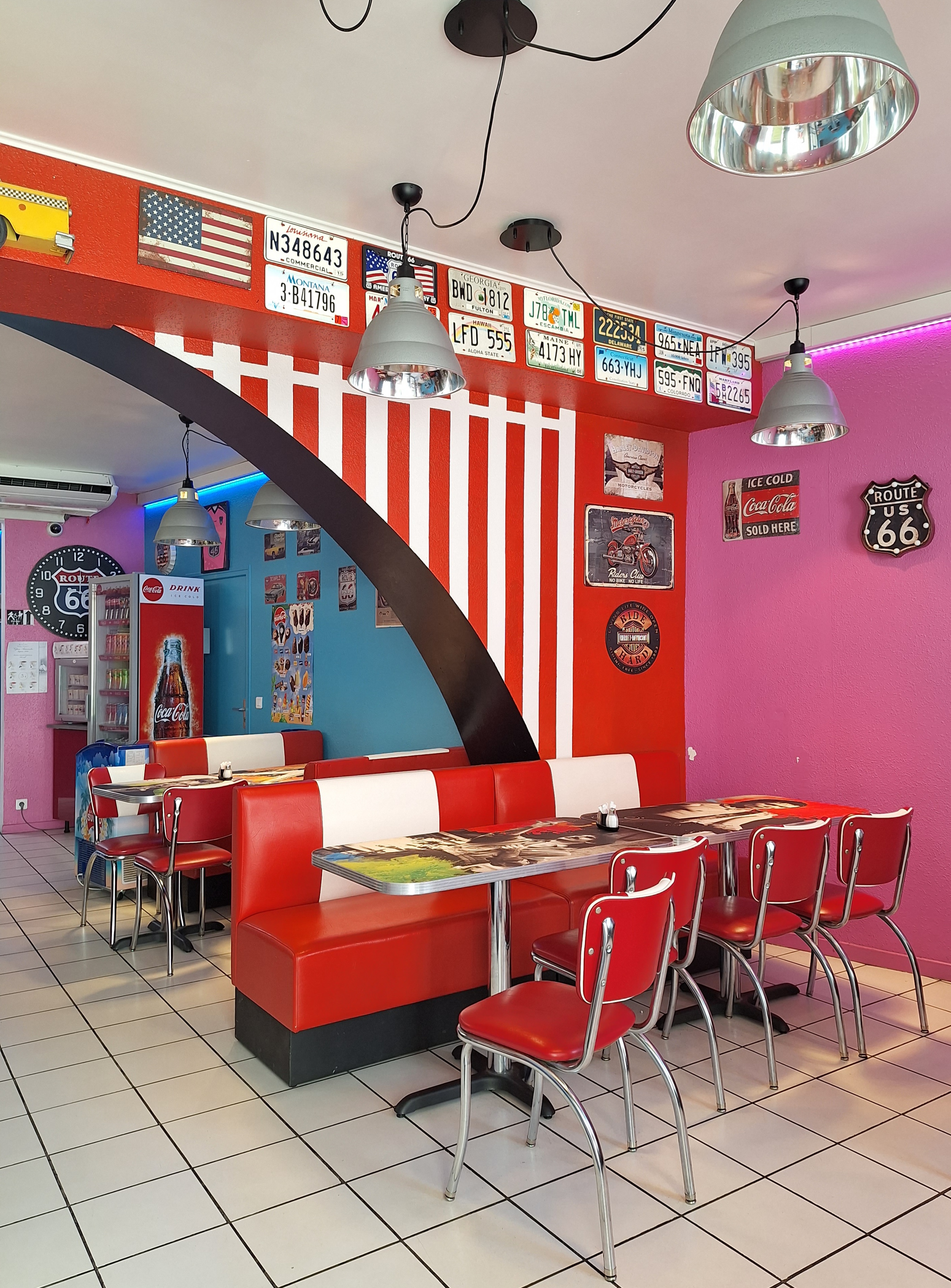 Très joli fast food décoré style années 50. Il faut venir y manger avant 20h30 sinon après c'est à emporter, quel dommage, l'endroit vaut le détour...