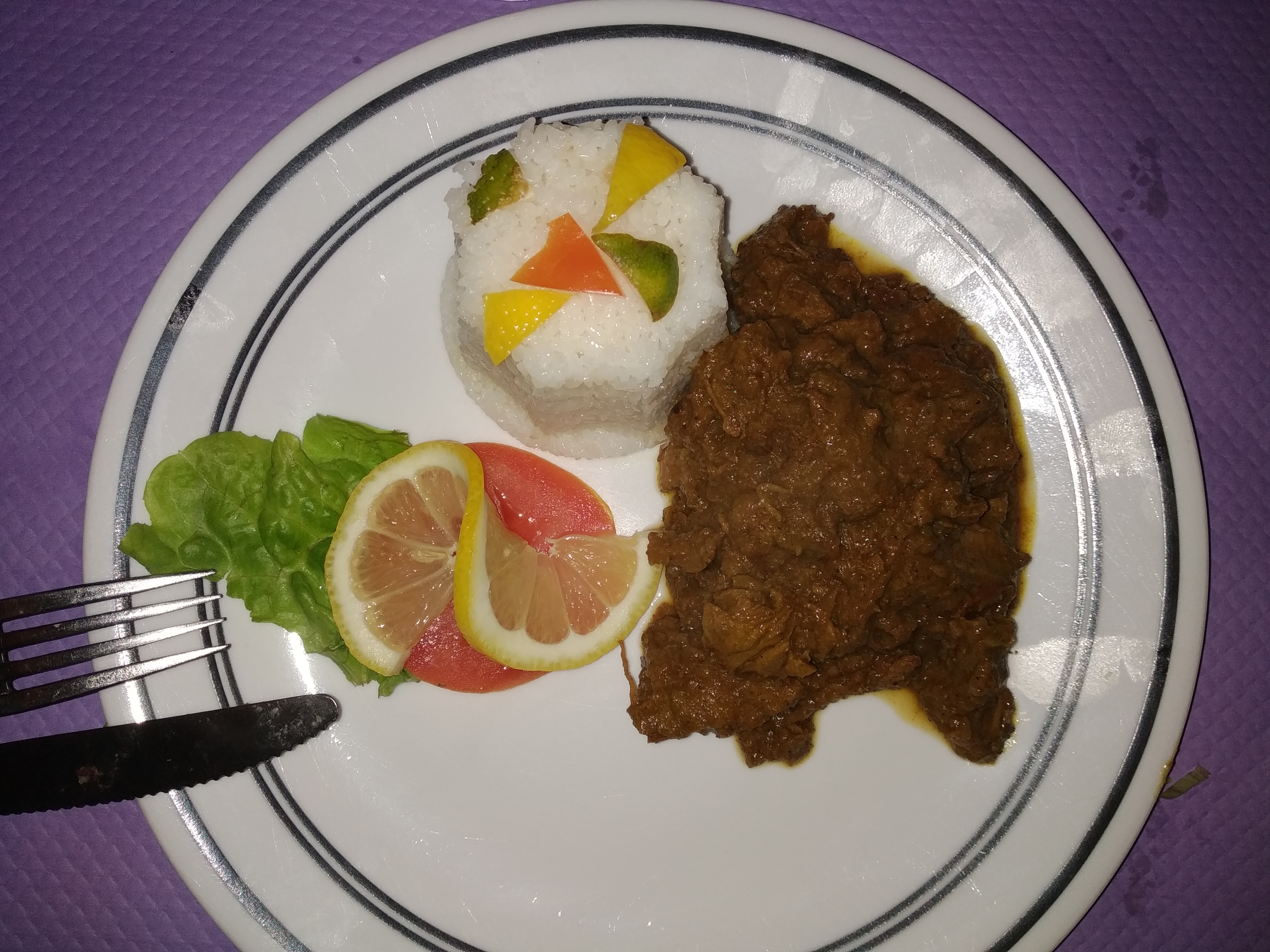 Certainement le meilleur rapport qualité/prix où j'ai pu manger jusqu'à aujourd'hui ! - Un planteur maison et des cacahuètes en guise d'apéro - Une salade (salade, tomates, maïs) servie avec trois accras, un samoussa et un boudin Antillais. - Une portion de riz avec un poulet mafé - Un fruit - Un digestif - Une demie bouteille de vin pour le repas Le tout pour 10€ ! Cuisine simple mais très bonne, ambiance chaleureuse et excellent acceuil. Merci !