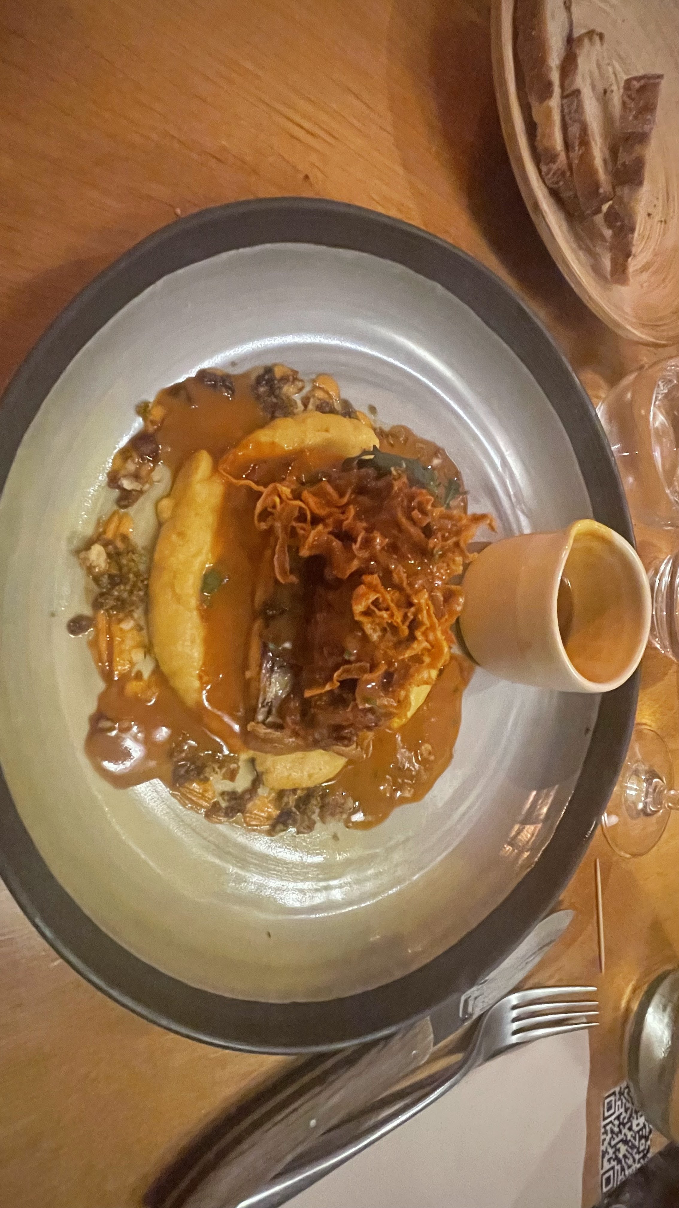 Un restaurant très agréable ou tout est fait maison Accueil très chaleureux Les mets sont servis dans de magnifiques assiettes artisanales en terre cuite , et avec de magnifiques couteaux ce qui est un petit plus Les plats sont magnifiques et délicieux Les bières locales accompagnent le repas À recommander