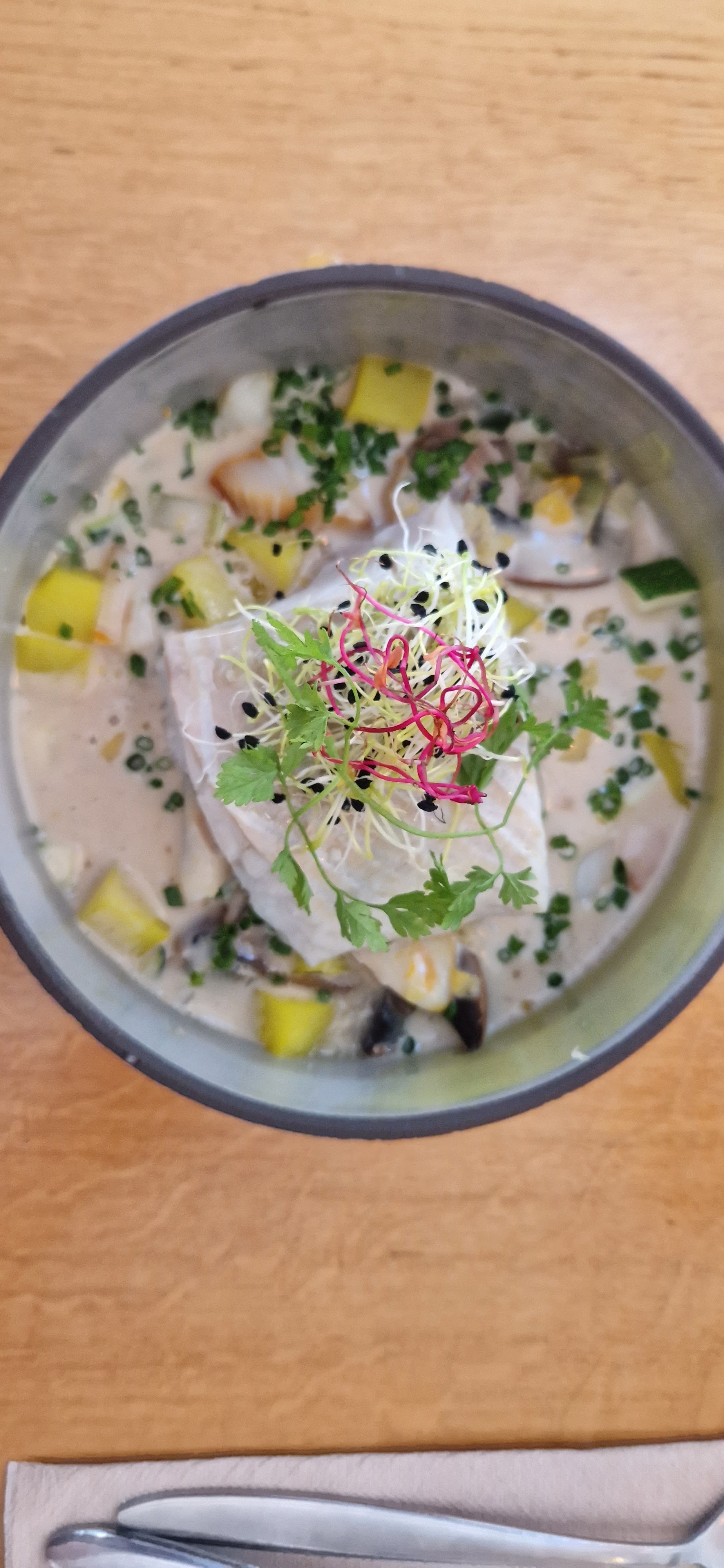 Nourriture très fine, parfumée (le poisson était extraordinaire) avec de très belles propositions végétariennes. Service attentif et soigné dans un restaurant calme et chaleureux. A recommander absolument !