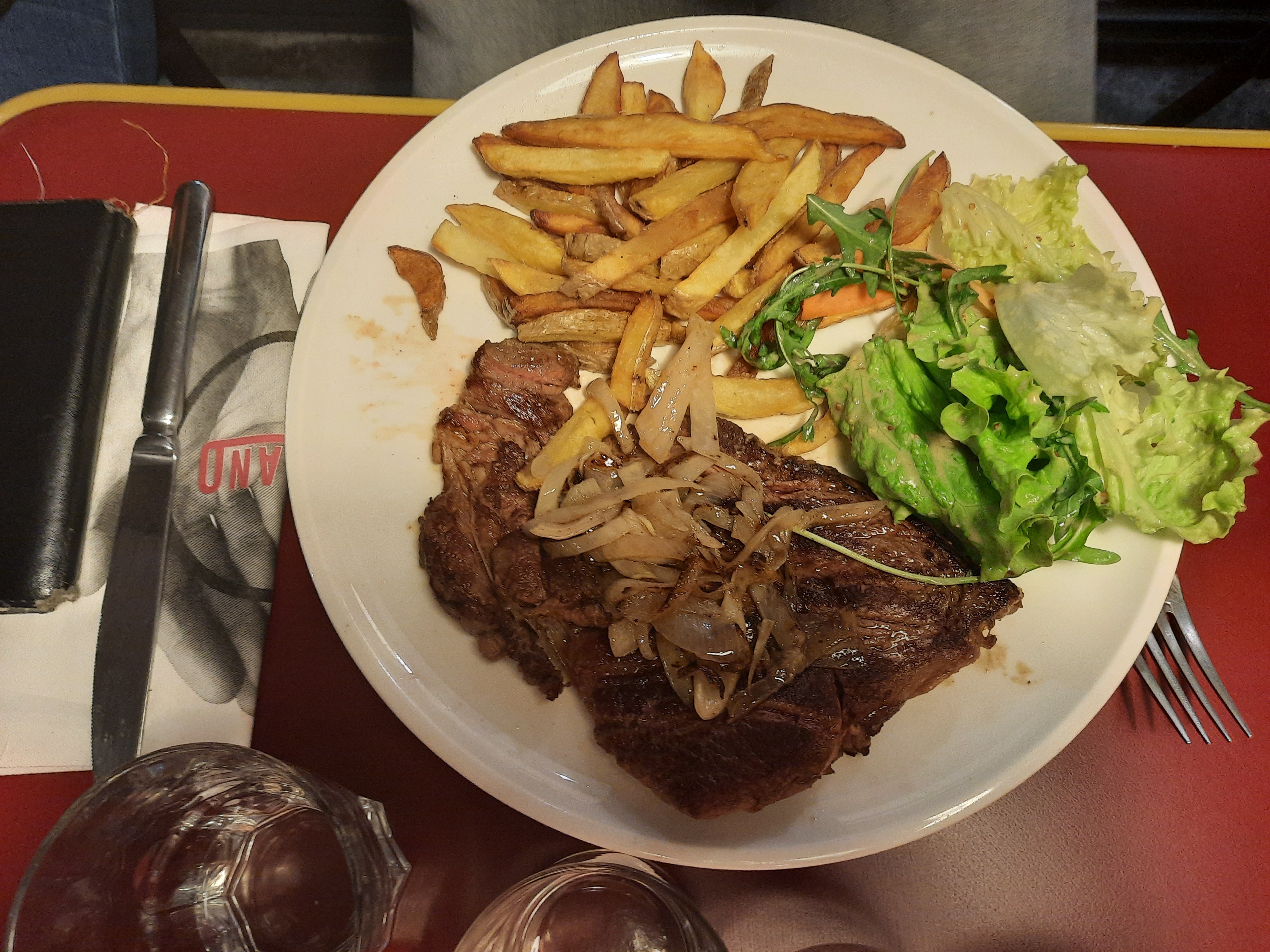 Trois étoiles car on est venus un samedi soir et on a attendus longtemps, très longtemps, trop longtemps. Certes nous n'avions pas de réservation, donc normal. Ça ce n'est pas un problème, c'est une fois passée la commande, une heure et demie d'attente, on était près à repartir. Les deux autres tables à côté étaient aussi très agacees. D'autant plus que pas un mot de la serveuse et pas d'excuses, ou café offert, ou autre petit geste de quelque ordre que ce soit. Surtout quand on voit le plat : une entrecôte bleue, donc ormis la cuisson, rapide, rien de plus à préparer... Donc franchement au vu du prix et de l'attente pour un morceau de viande. Ne vaut pas le détour... On a connu vraiment mieux.
