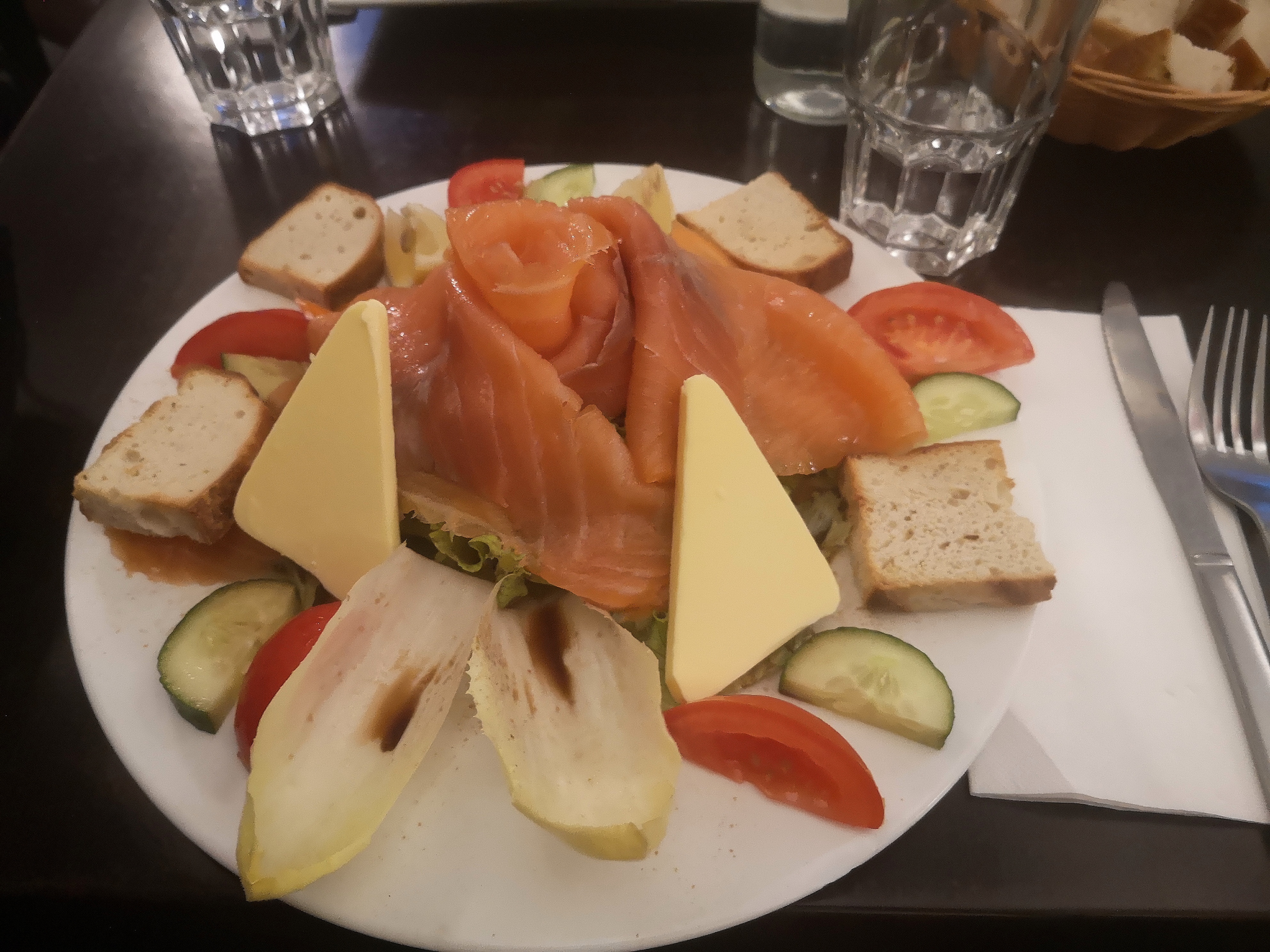 Ce restaurant de style Art Nouveau mérite le détour. On s’y sent bien, un léger bruit de fond dégageant une bonne ambiance dans être bruyant, le service y est toujours sympathique et agréable. L’un des plats-phares ici sont les lasagnes, délicieuses. Ce soir pour changer, j’ai tenté le foie de veau à la vénitienne et ses légumes de saisons : un régal !