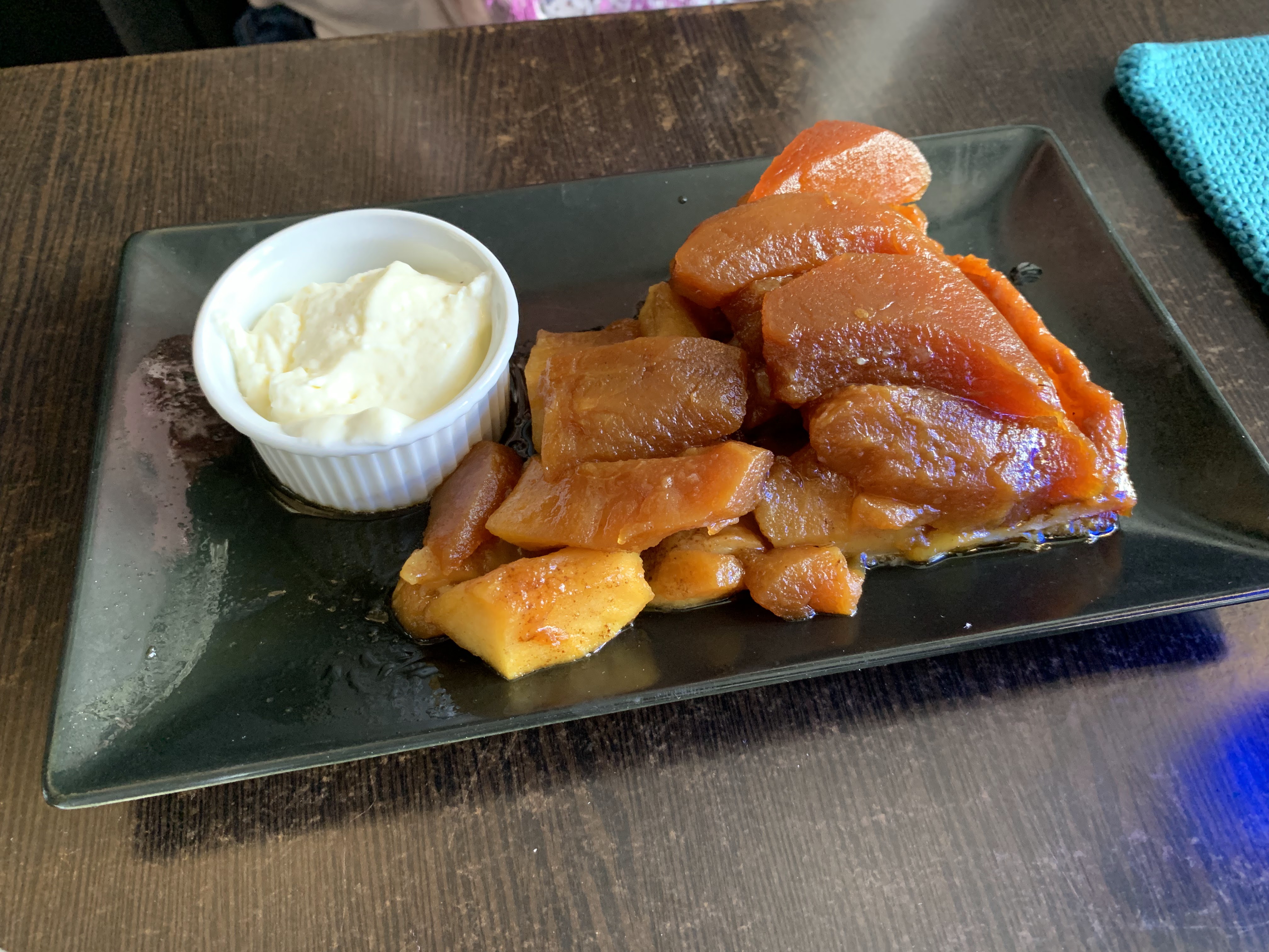 Dessert coulant chocolat noir coeur pistache très bon. Service en terrasse agréable et plutôt rapide. Très bien.