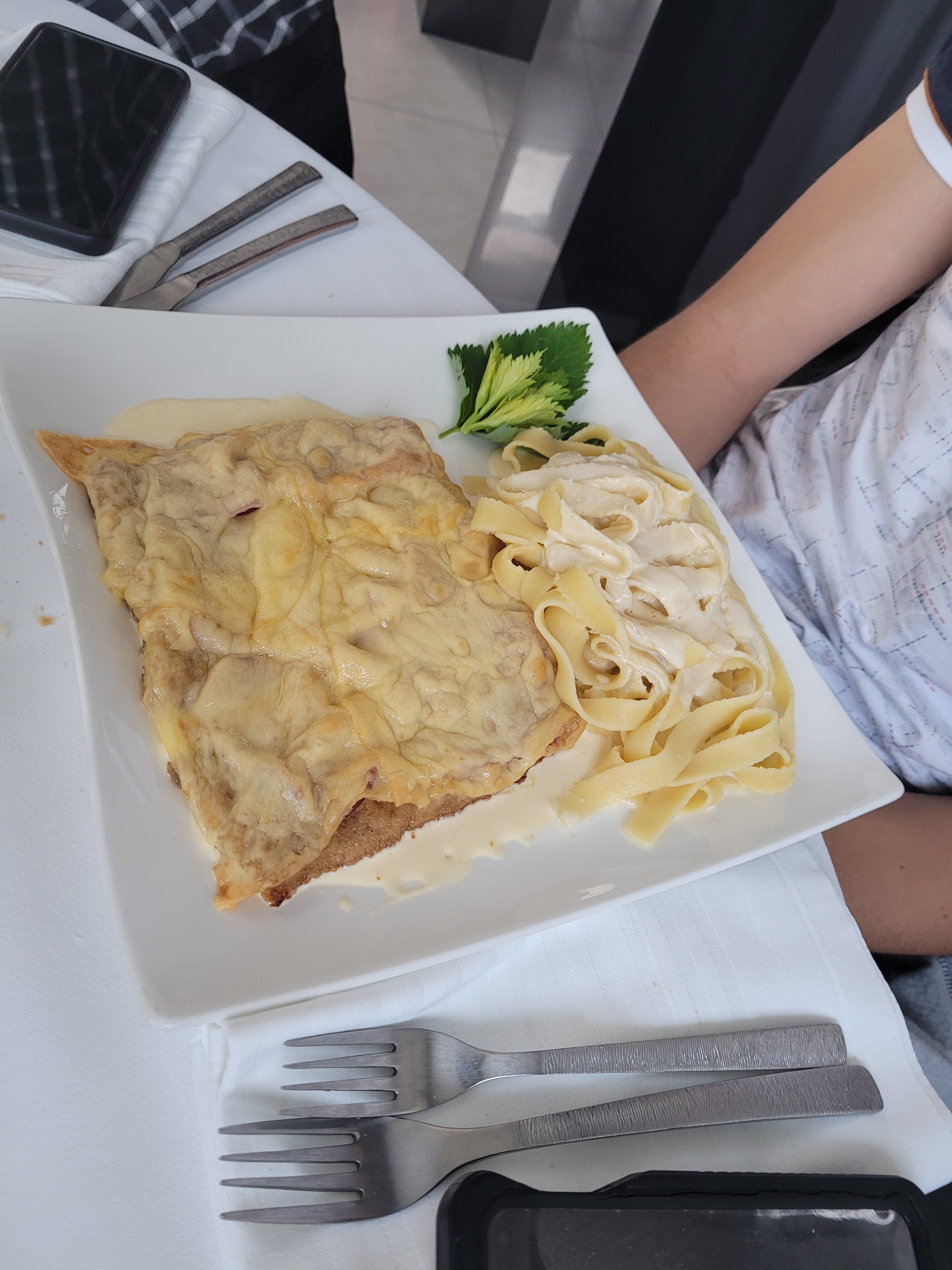 De bons plats de pâtes, escalope milanaise bonne, accueil sympa
