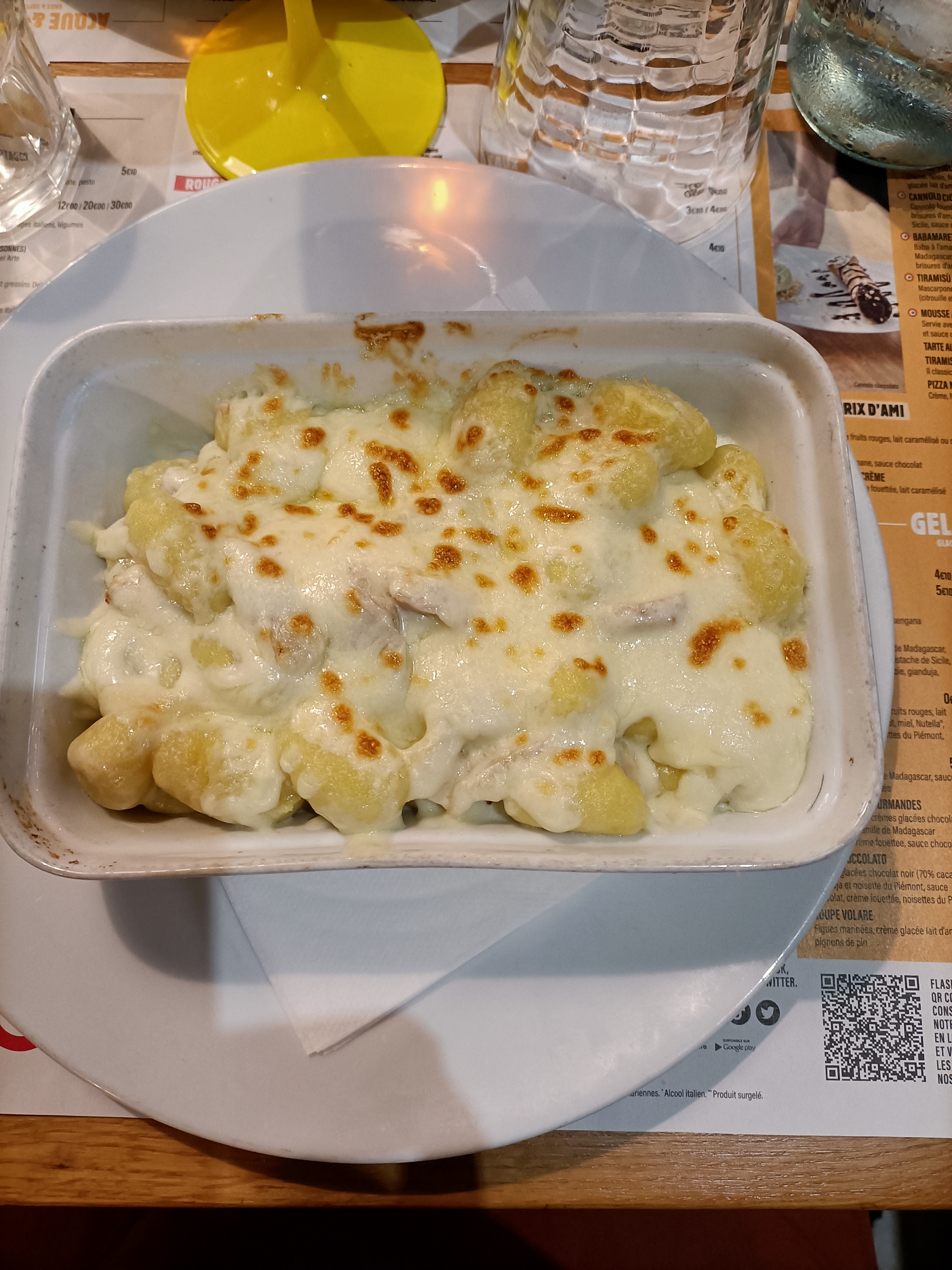 Il s'est passé à peine 3min entre l'apéritif et le plat, nourriture très basique. La pizza était bonne. Les pâtes carbo sans goût, la crème trop liquide qui reste dans le fond de l'assiette. Niveau dessert, café gourmand sans plus, dame blanche avec des boules vanilles sans goût et de la chantilly en bombe. A part la serveuse qui était plutôt sympathique, sinon rien d'autre de fou. Je ne reviendrai pas
