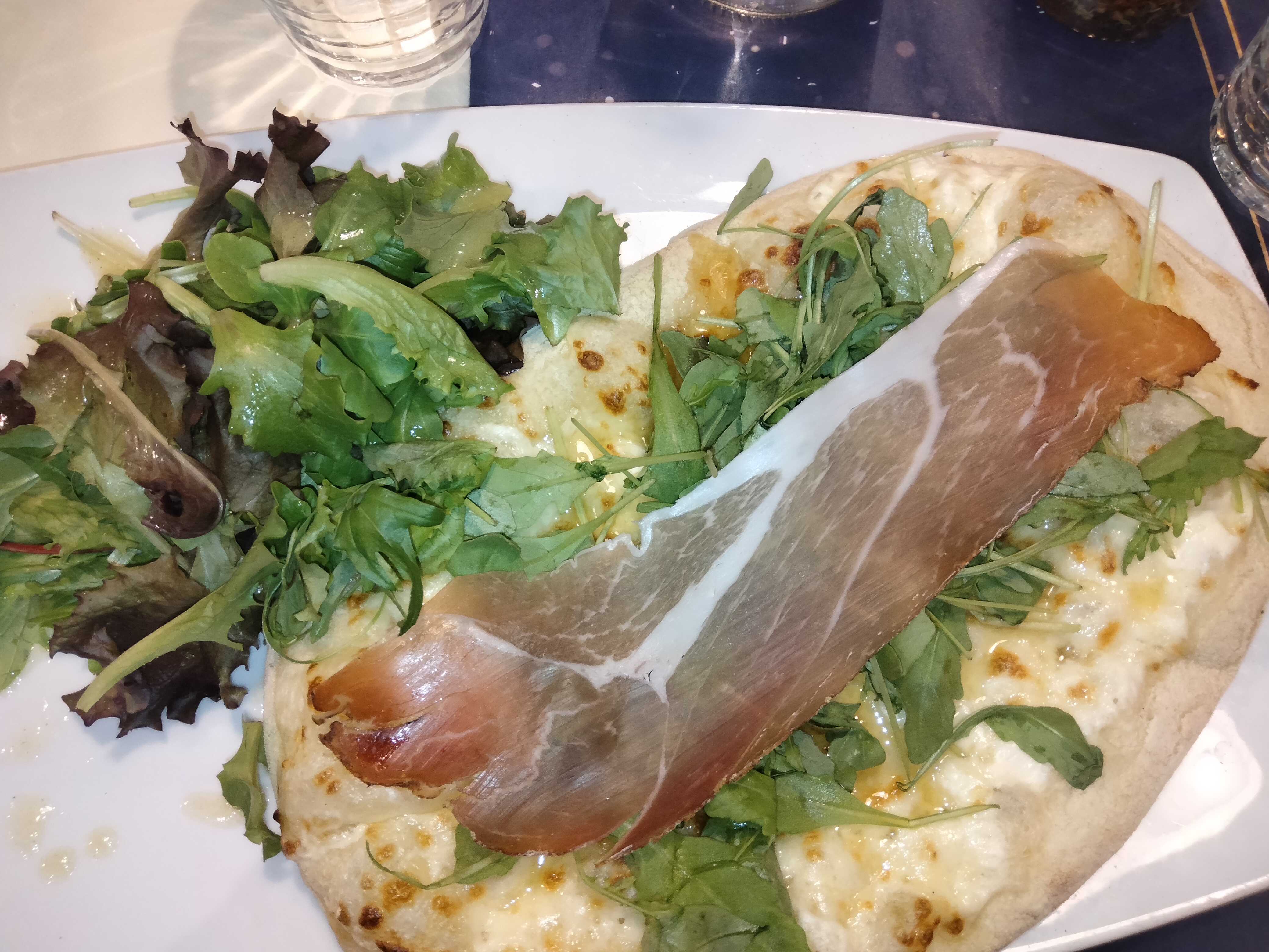 Je suis un peu déçu… j’ai vue la fameuse calzone sur la carte qui montre que il y a de la salade en bonne quantité mes aussi une pizza bien garni, j’ai donc pris cela. Le plat arrive et j’ai remarqué que finalement il y a pas de ressemblance sur la carte Il y a peu de salade et peu de garniture dans la pizza. Ensuite, il est déconseillé de se mettre à côté de la porte de cuisine, une odeur d’égout mais aussi de la musique (Lomepal) qui est très embêtant si vous voulez passer un bon moment.