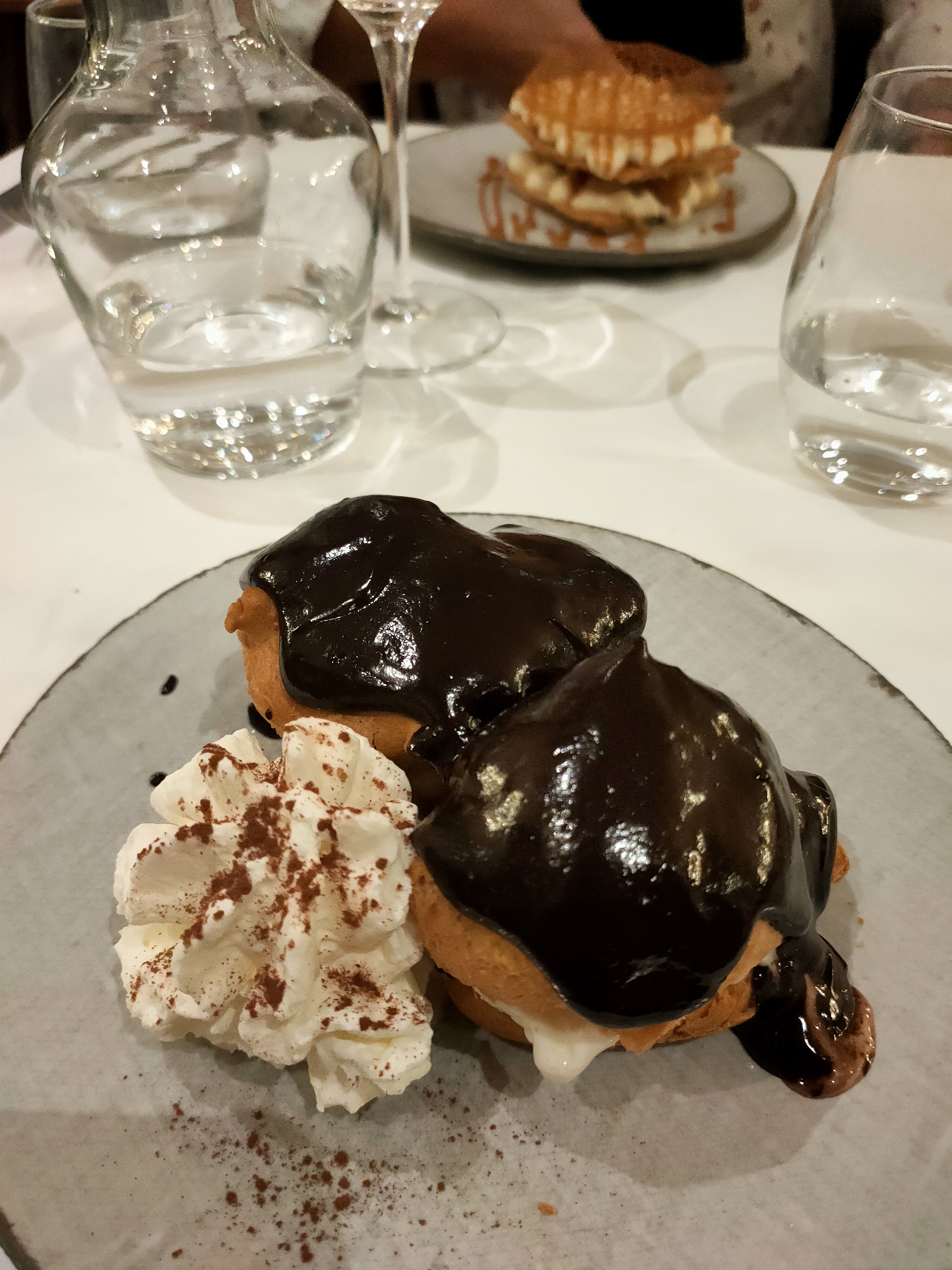 Un menu avec des bons produits et le vin et le café inclus pour 23€, il ne faut pas hésiter. C’était très bon et les profiteroles sont à tomber…