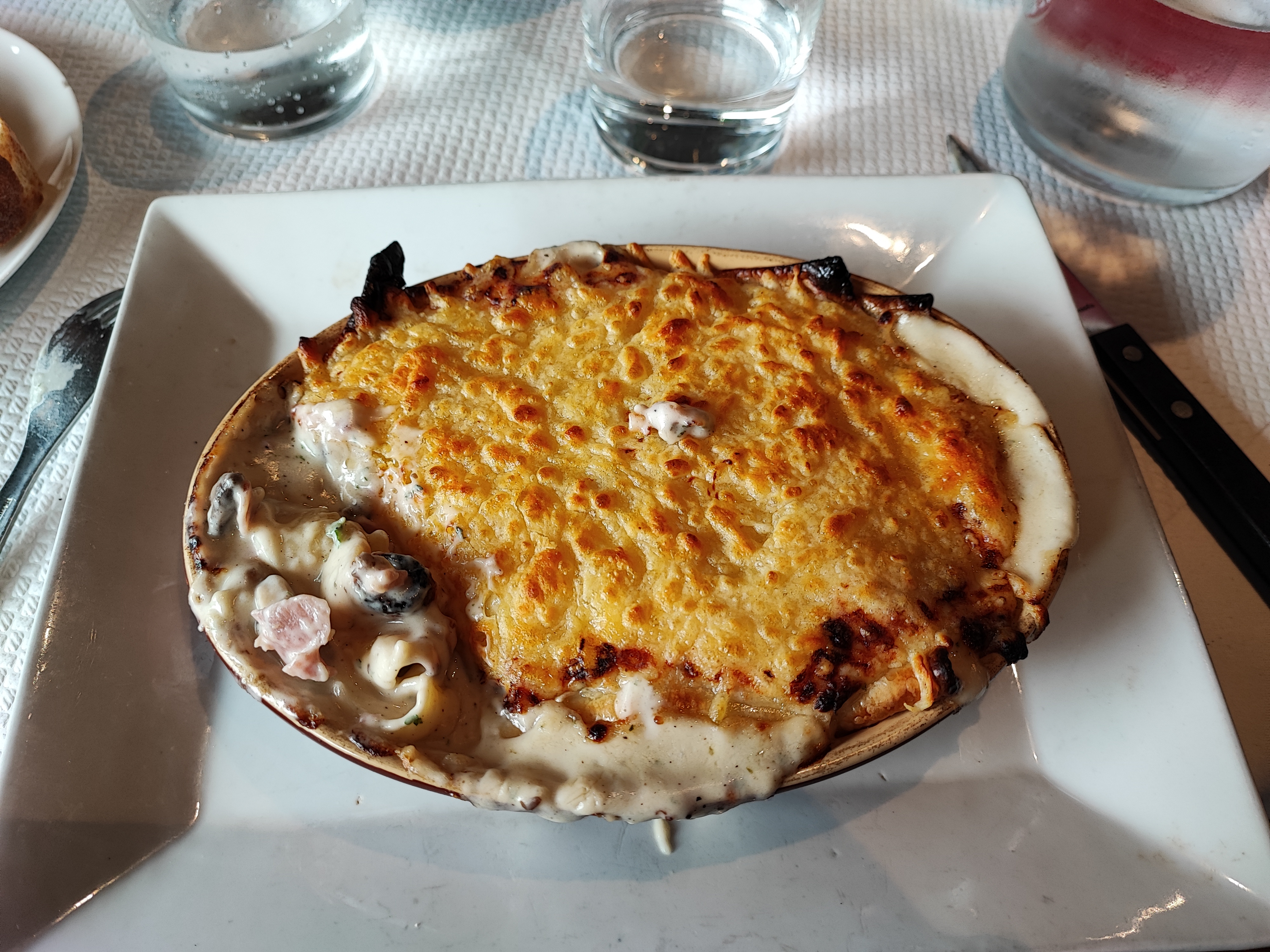 Pâtes trop cuite et non fraîches avec une sauce qui semblait provenir d'une boîte, le tout pour 15€50, service parfait