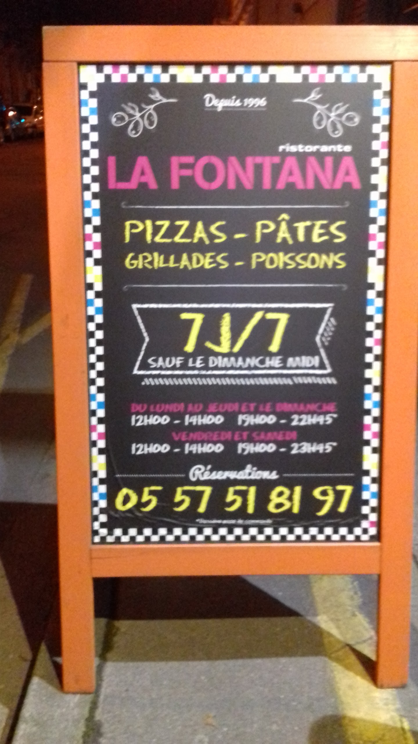 La Fontana c'était pas mal du tout la pizza était bonne j'ai trouvé la tomate un petit manque de puissance mais pas mal du tout non je n'ai que 3 étoiles c'est la moyenne parce que j'ai goûté que des pizzas j'ai pas goûté tout le reste car il y a des papiers un peu tôt c'est un véritable restaurant italien et beaucoup de choix après m'être renseignée sur les pizzas sur Libourne apparemment et pizzas sont les meilleures à la Fontana