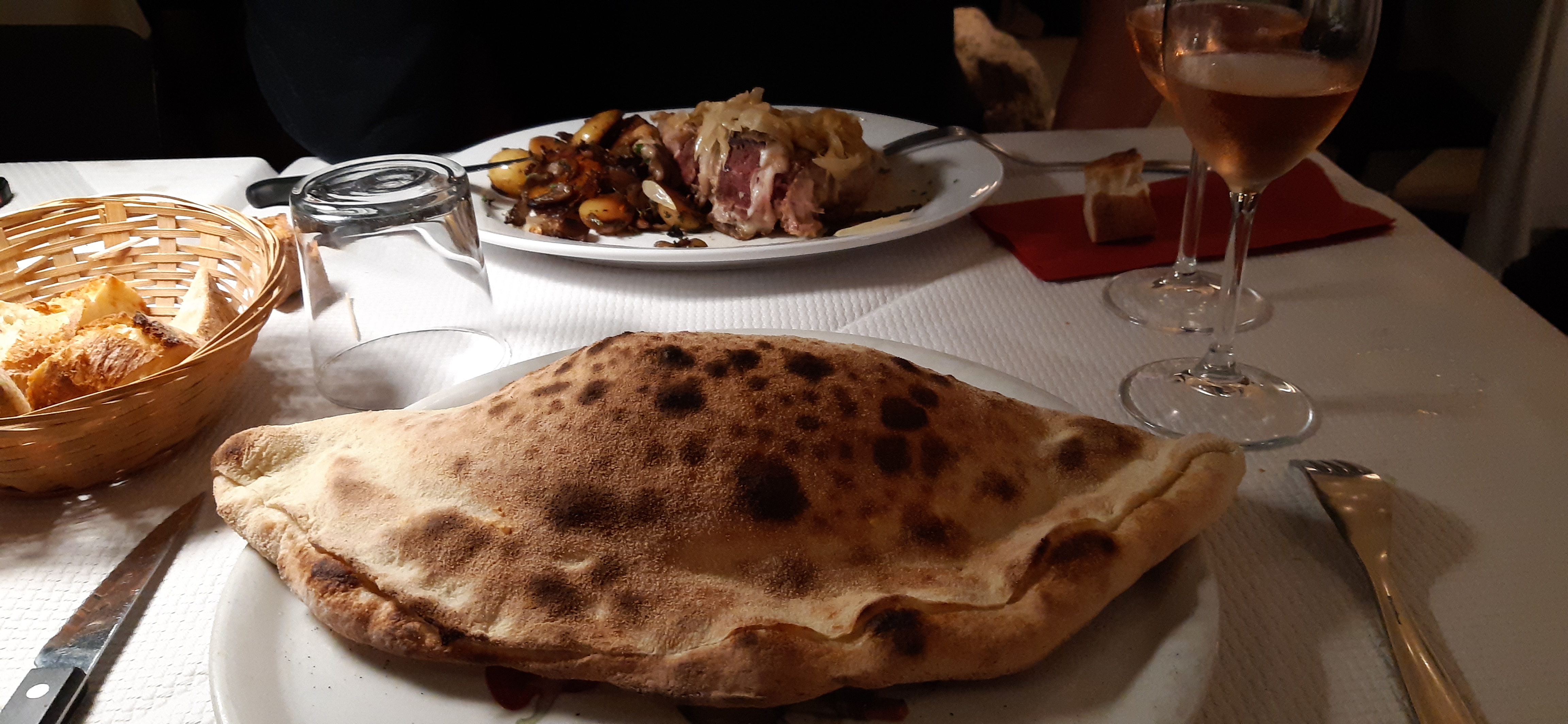Bonjour, Très joli restaurant avec des nappes en tissus (c'est très agréable). Le personnel était très aimable et compétent. Ns avons dégusté une pizza aux fromages, un calezone accompagné d'un verre de vin rouge et des profitéroles. Tout était excellent et très copieux. Le service était impeccable. Merci beaucoup. Je tiens à signaler une chose supplémentaire : les toilettes sont spacieuses et très propres. Cet endroit très accueillant mérite le détour. Merci bcp