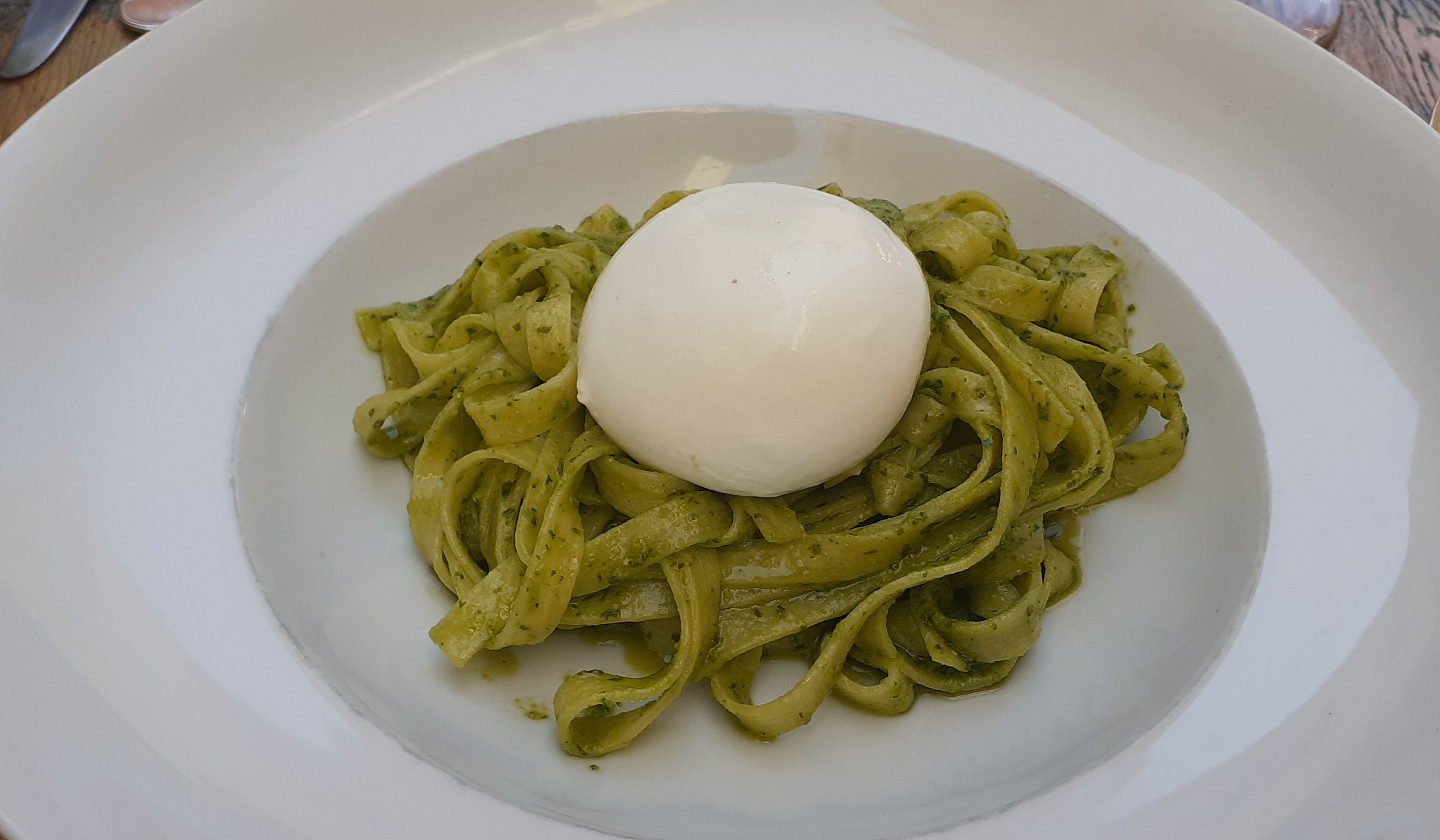 Restaurant très sympathique, personnel agréable. J’ai pris des pâtes pesto/burrata et elles étaient très bonnes. Je recommande !