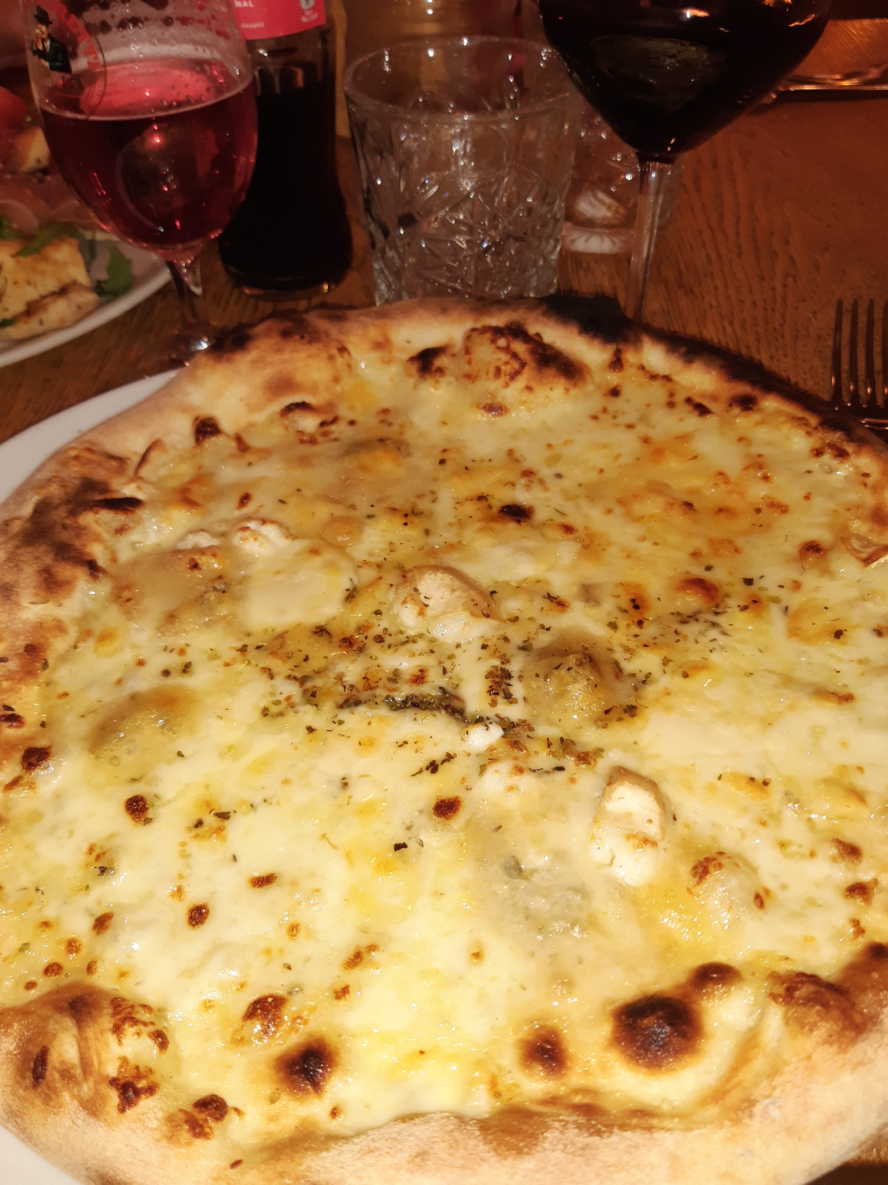 Rien à dire sur la pizza, qui était très bonne. Par contre, mes amies ayant pris des gambas et un cheeseburger n'ont pas du tout apprécié. Tout en petite quantité, burger froid, 4 gambas et une feuille de salade pour 18euros avec tous les accompagnements payant. C'est très cher pour ce qu'il y avait dans les assiettes. Le service par contre était top, on nous a offert le digestif à la fin et les serveurs sont sympathiques.