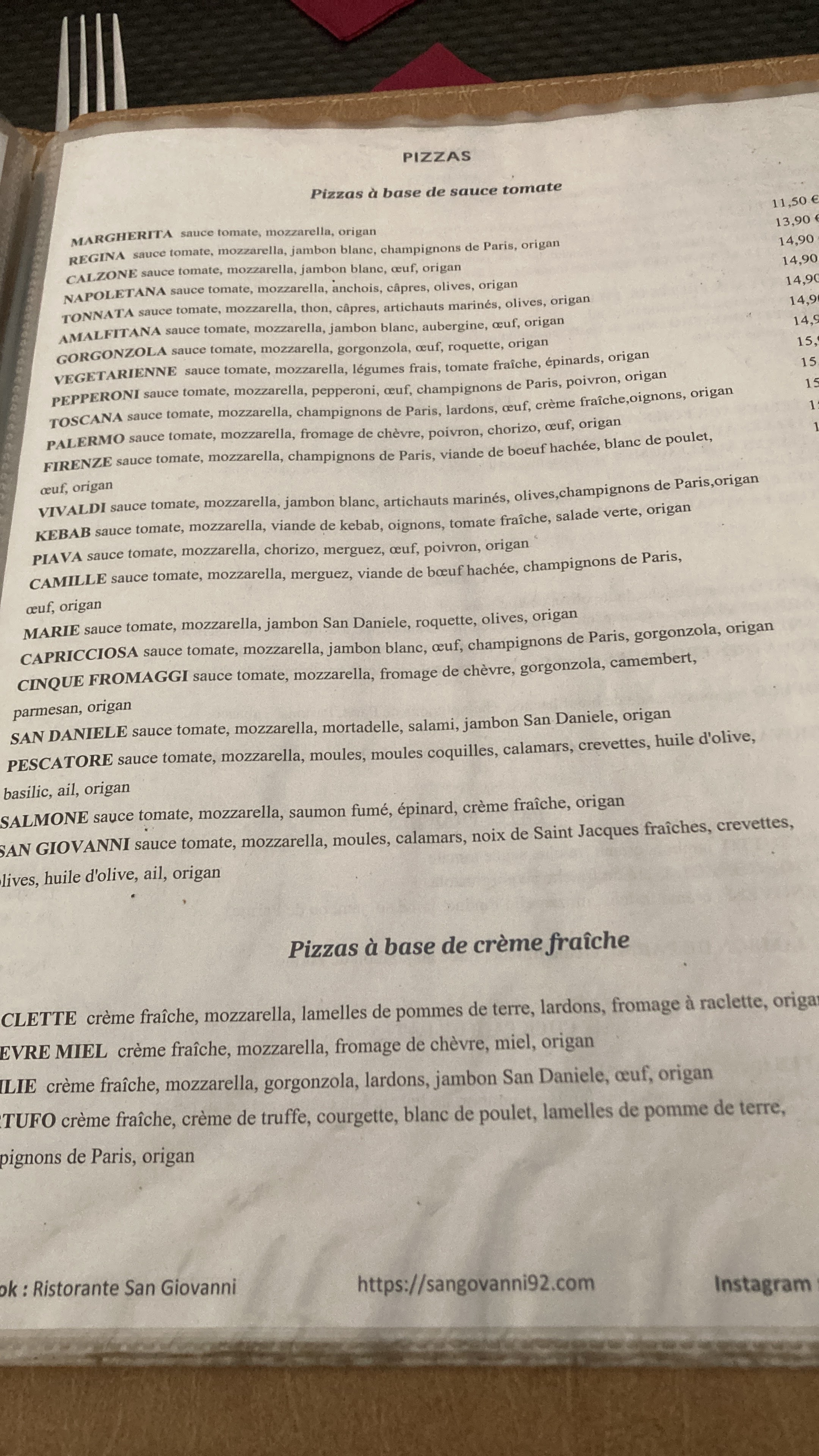 Hier soir par hasard nous avons dîné chez San Giovanni à Courbevoie. Belle découverte, accueil chaleureux, pizza délicieuses avec produits de qualité, escalope de Saltimbocca excellente. Nous y reviendrons avec plaisir. Très bon rapport qualité/prix.