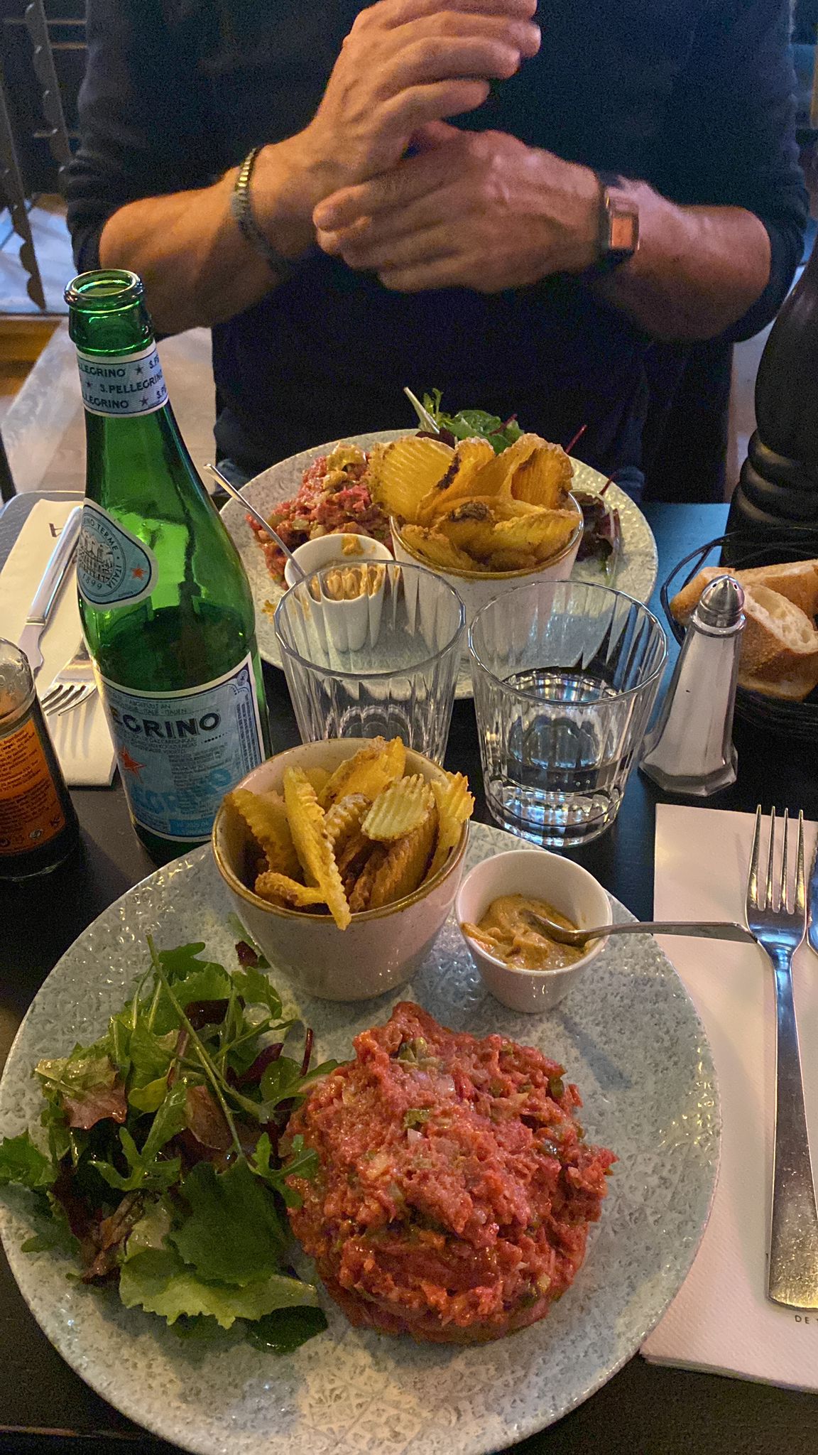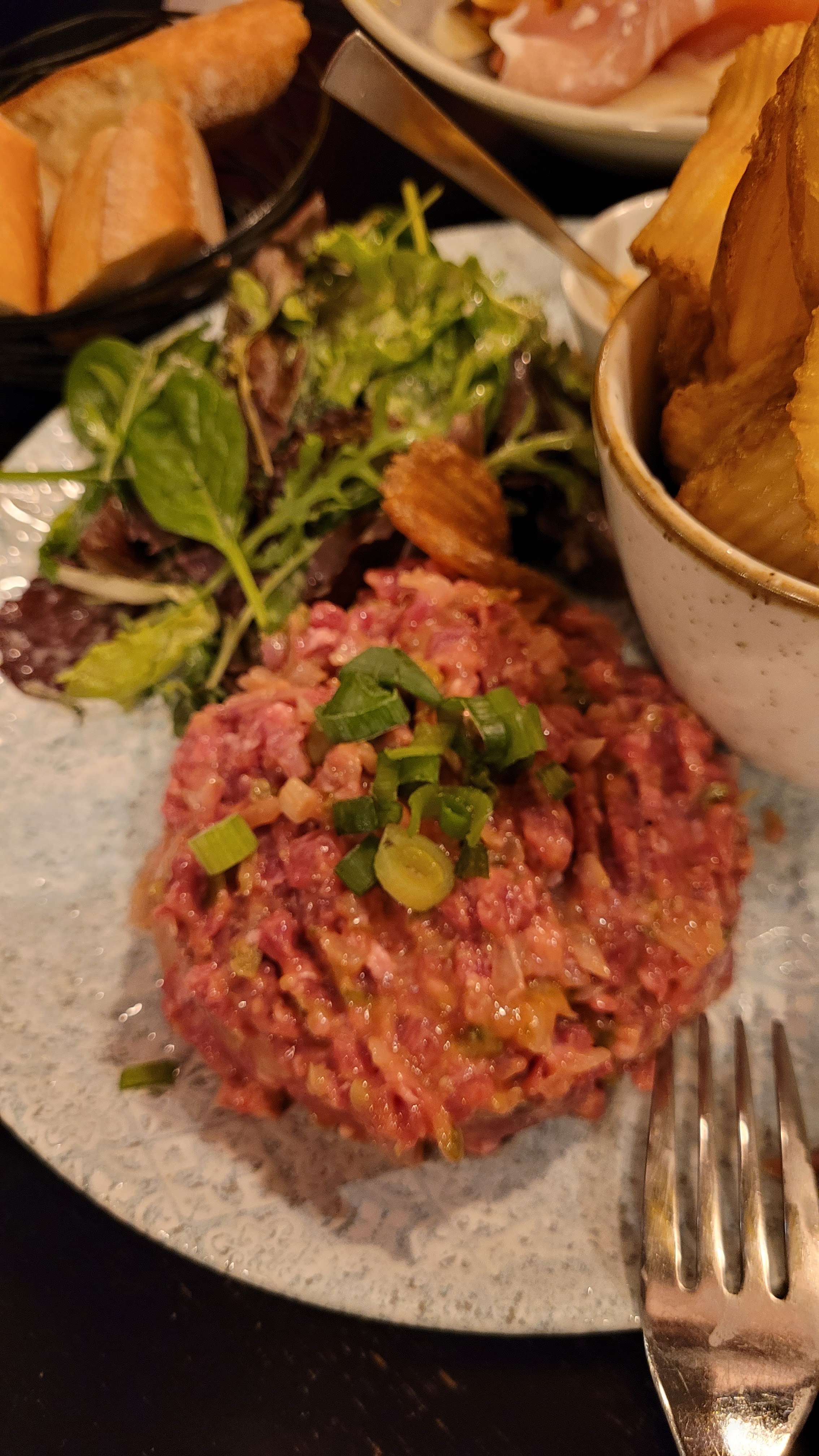 Restaurant très sympa, pas dans le quartier animé de Montmartre. Le steak tartare est super.