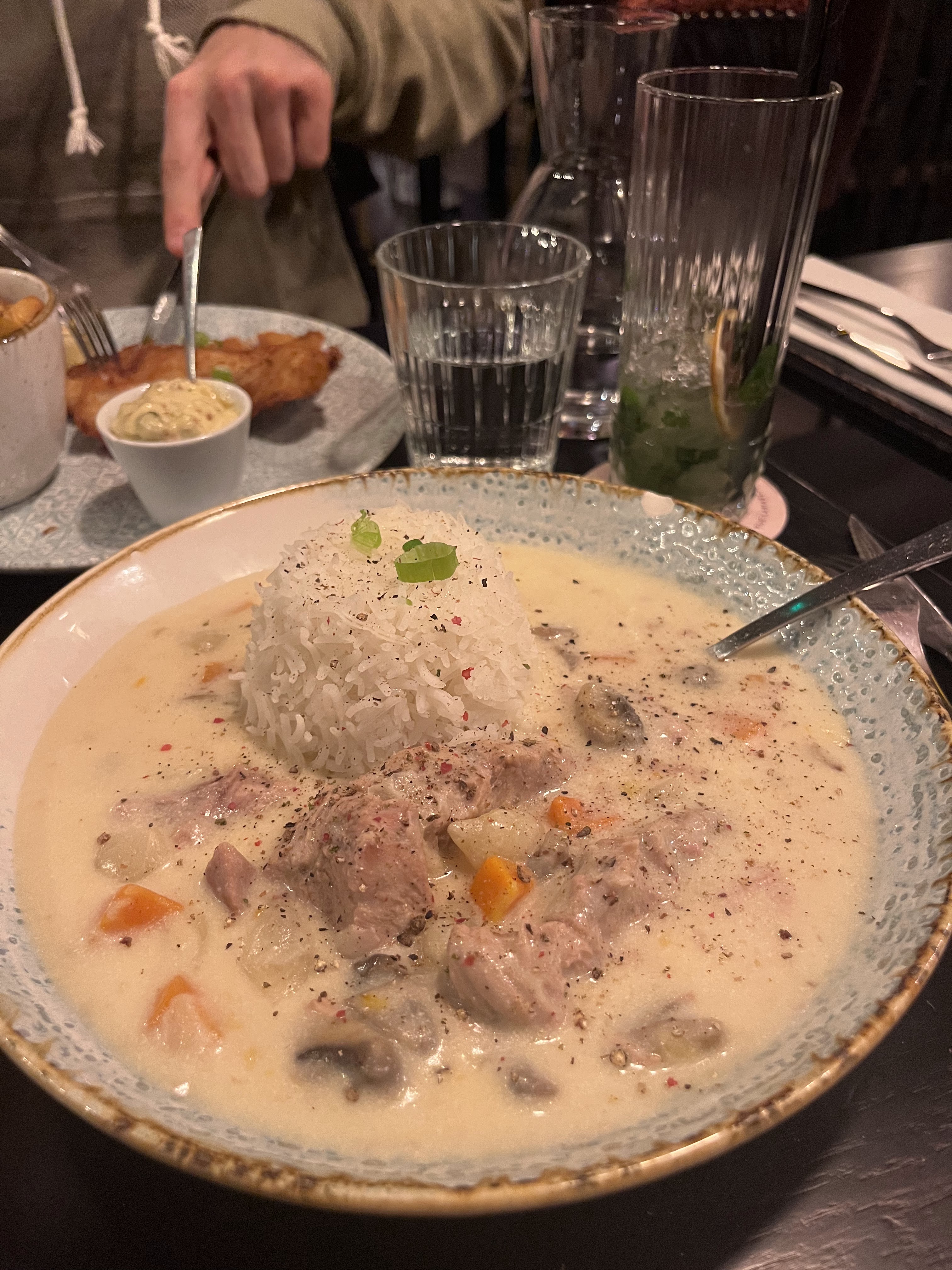 Bon accueil... Le restaurant ferme tard.Nous étions quatre. Mais ce n'est pas bon. Le fish and chips s'il est copieux est sans goût de même le risotto... Un vin blanc Chardonnay sans saveur. Un établissement comme malheureusement il y en a trop dans le secteur.