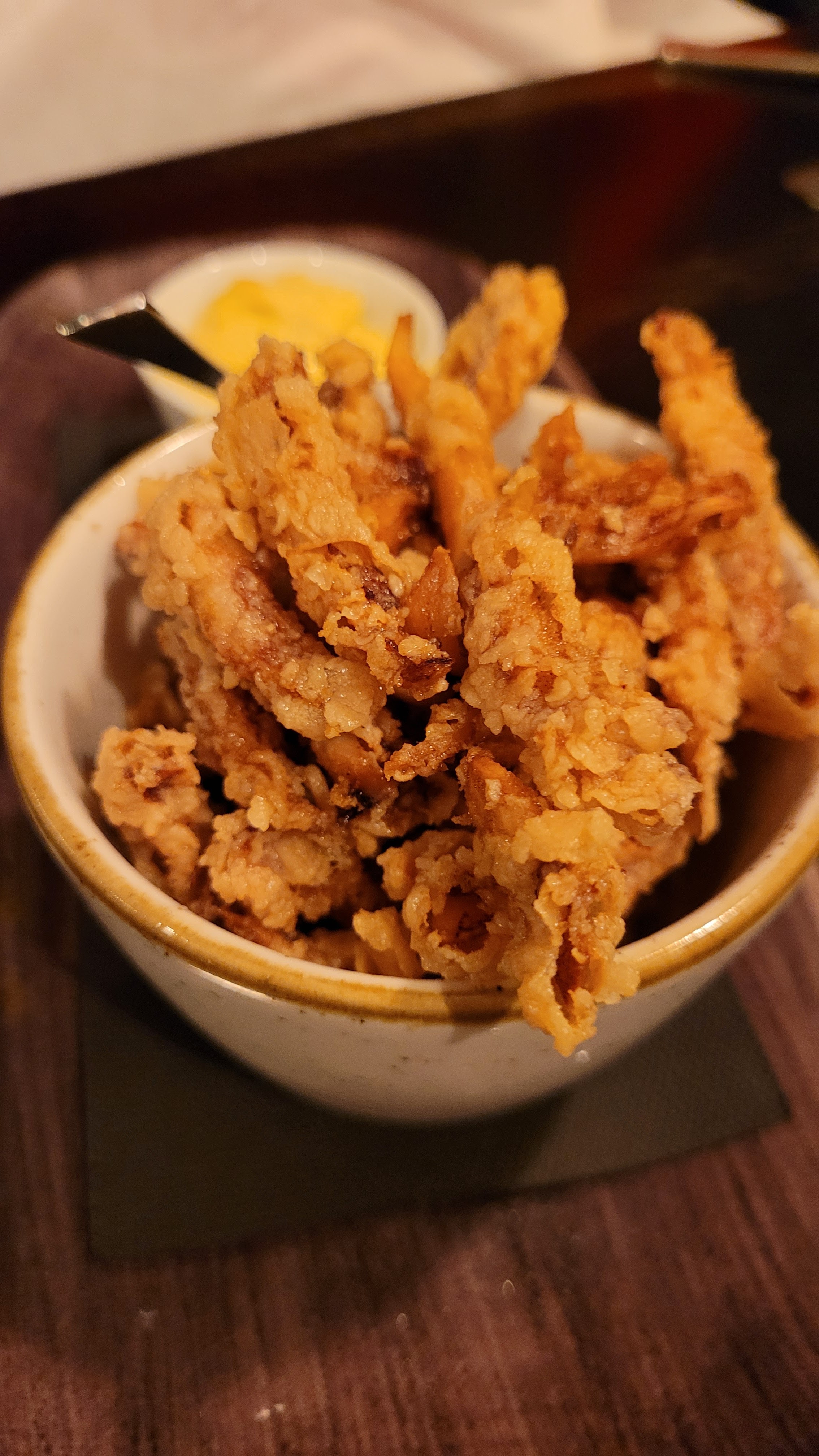 On a dîne dans le resto après un théâtre en fin de service. Le repas était ok mais le riz servi avec le tigre qui pleure était sec et tout agrégé comme s’il avait passé 2 jours au frigo et réchauffé au micro ondes. Ça donne une très mauvaise impression. La viande par ailleurs était ok. Mon conjoint a commandé une salade cesar à laquelle il manquait l’œuf mollet, Une sensation de bâclé c’est dommage car le lieu est sympa et le personnel serviable et à l’écoute
