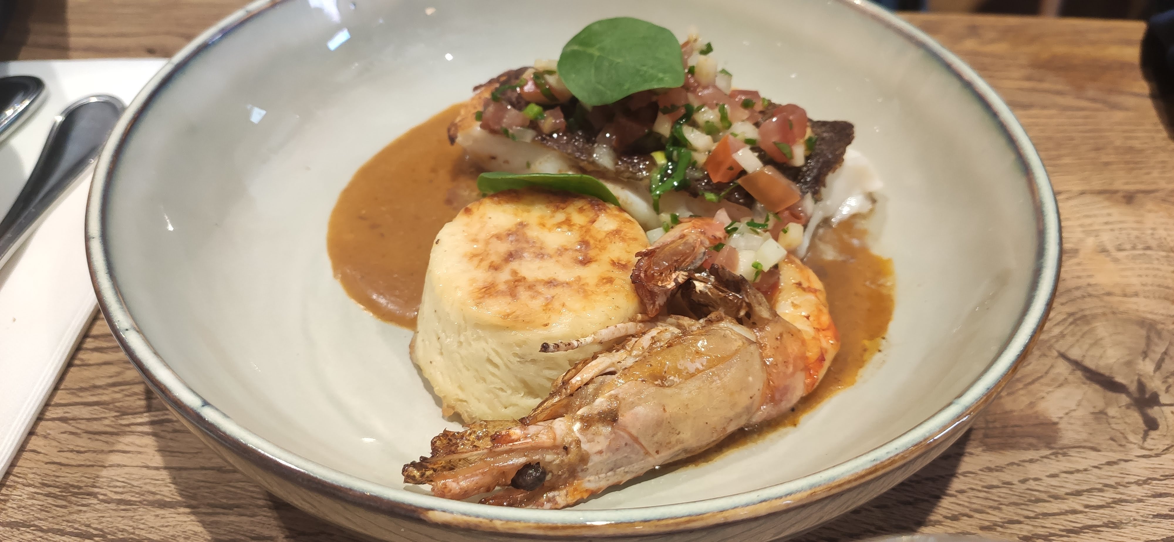 très belle découverte, nous y avons mangé à midi et avons pris la formule entrée plat dessert à 28 € c'était vraiment excellent, très bien servi , copieux avec une mention toute particulière pour le service qui a été vraiment très agreable