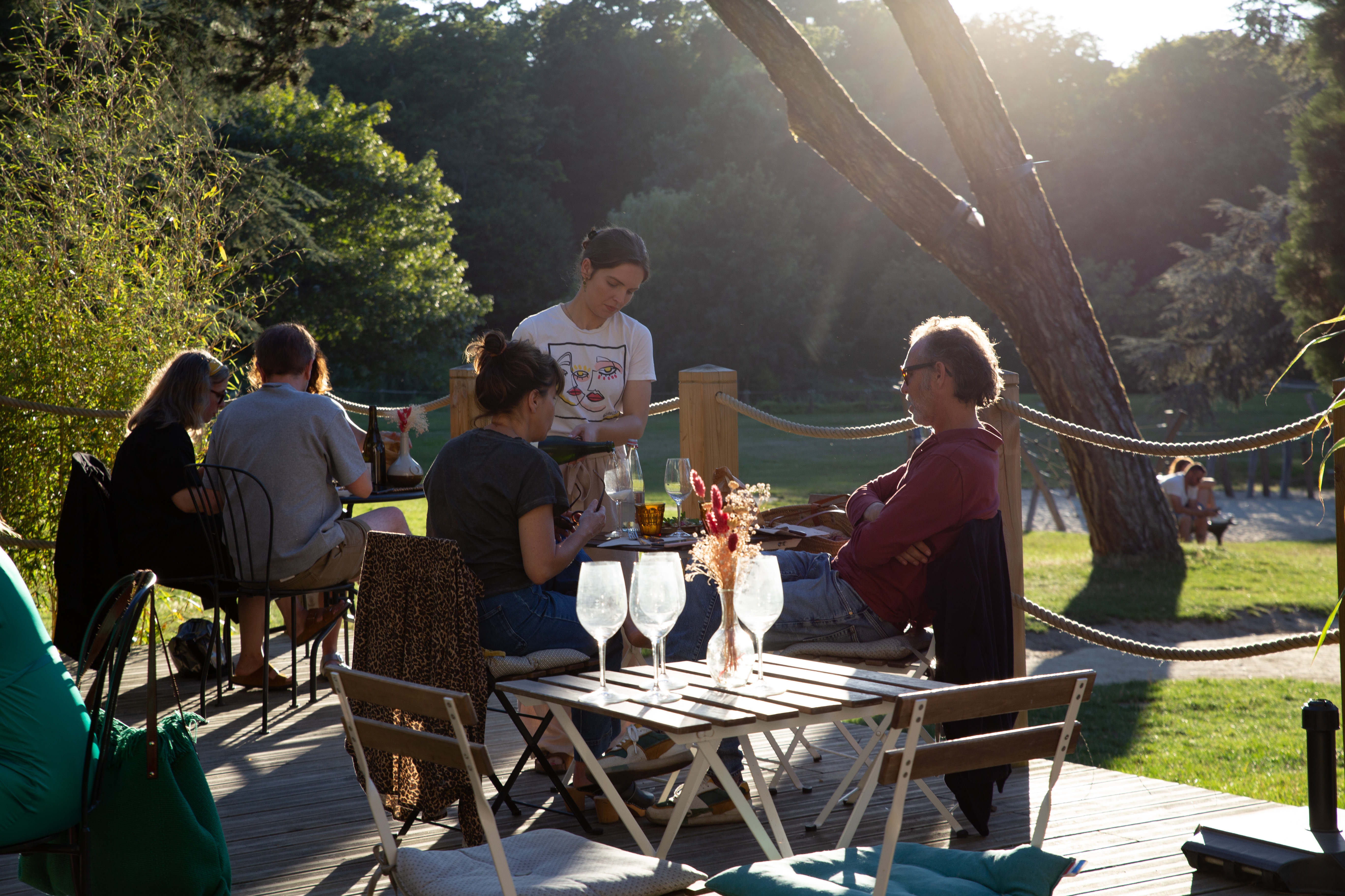 Cette terrasse privée est une vrai havre de paix au milieu du parc pour déguster des bons produits, les conseils pour les vins sont parfaits, accueil très sympathique . Rien à redire !!