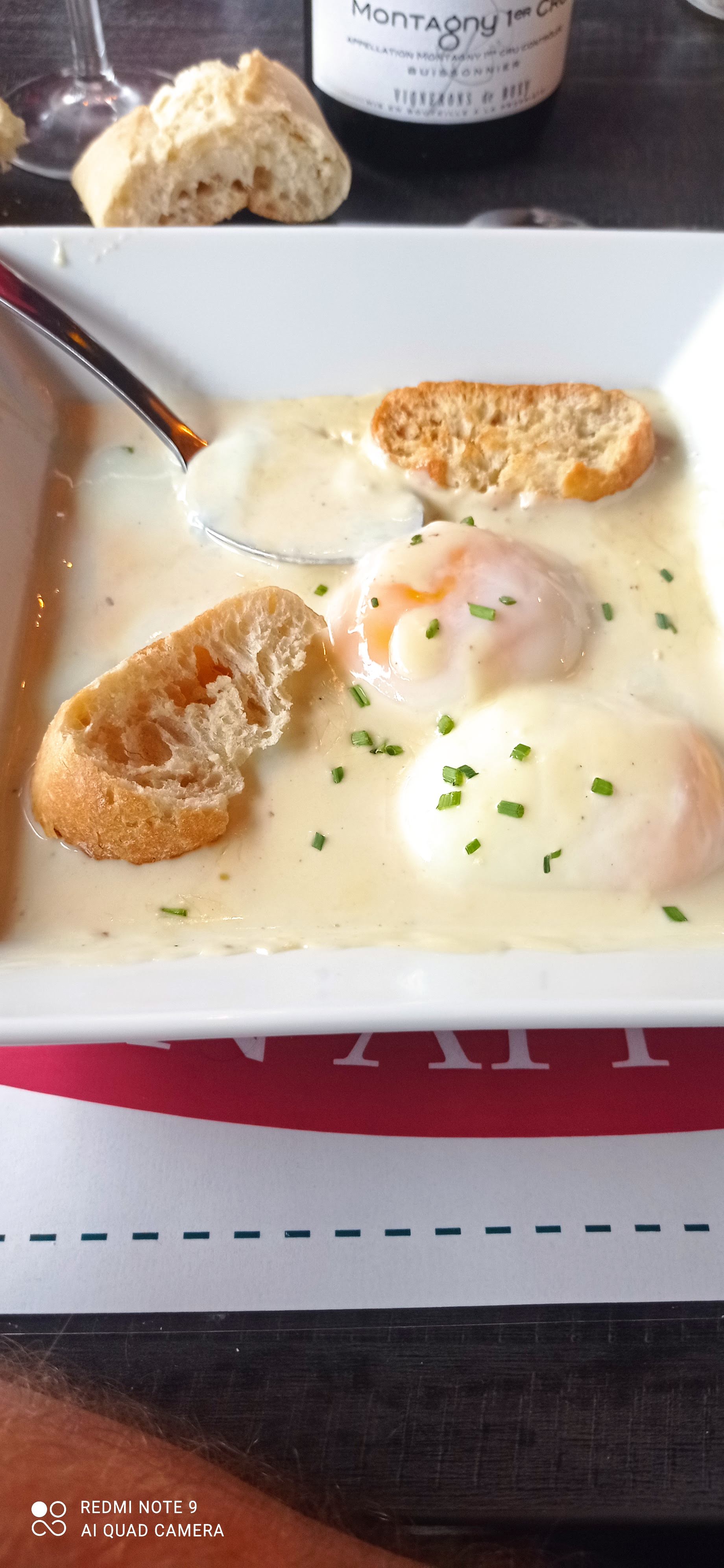 Pas satisfait du tout commander des oeufs en meurette sauce epoisse chercher l epoisse friture présentée avec un morceau de citron sans sauce froide à déconseiller