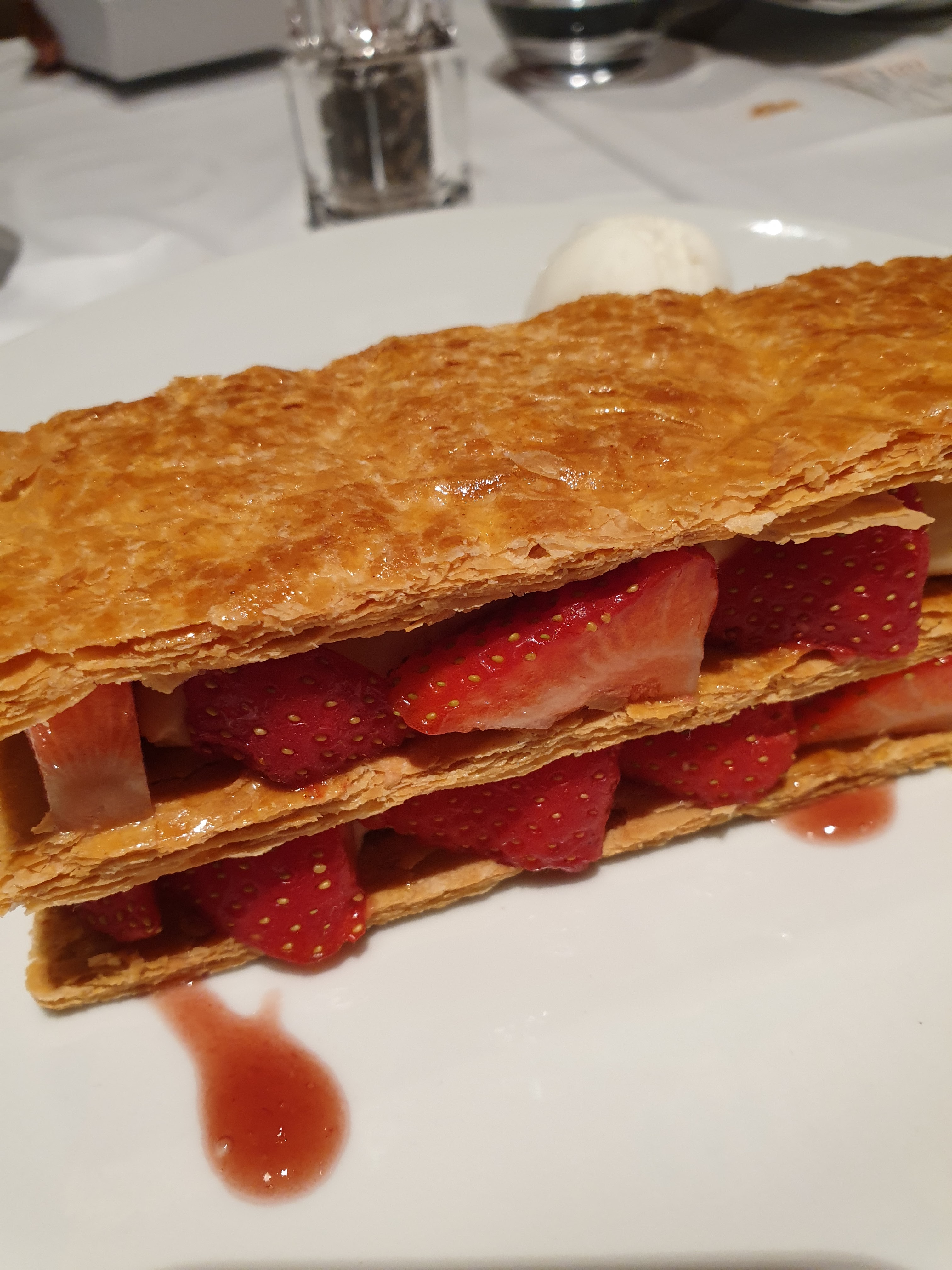Comment dire ....ou est le service à la française ? Un service excessivement lent et mauvais..une soupe à l'oignon dans une assiette avec une cuillère de bouillon( cube?) Une feuille d'endive garnie d' une crème insipide..un gravelax de saumonmarine a la vodka avec 3 fines lamelles de saumon sans saveur sans odeur. Le pompon un œuf poché qui est dur retourné en cuisine . Tout cela servi 15 mn après le cabillaud. . Du coup certains mangent d'autres regardent.. Une honte absolue.