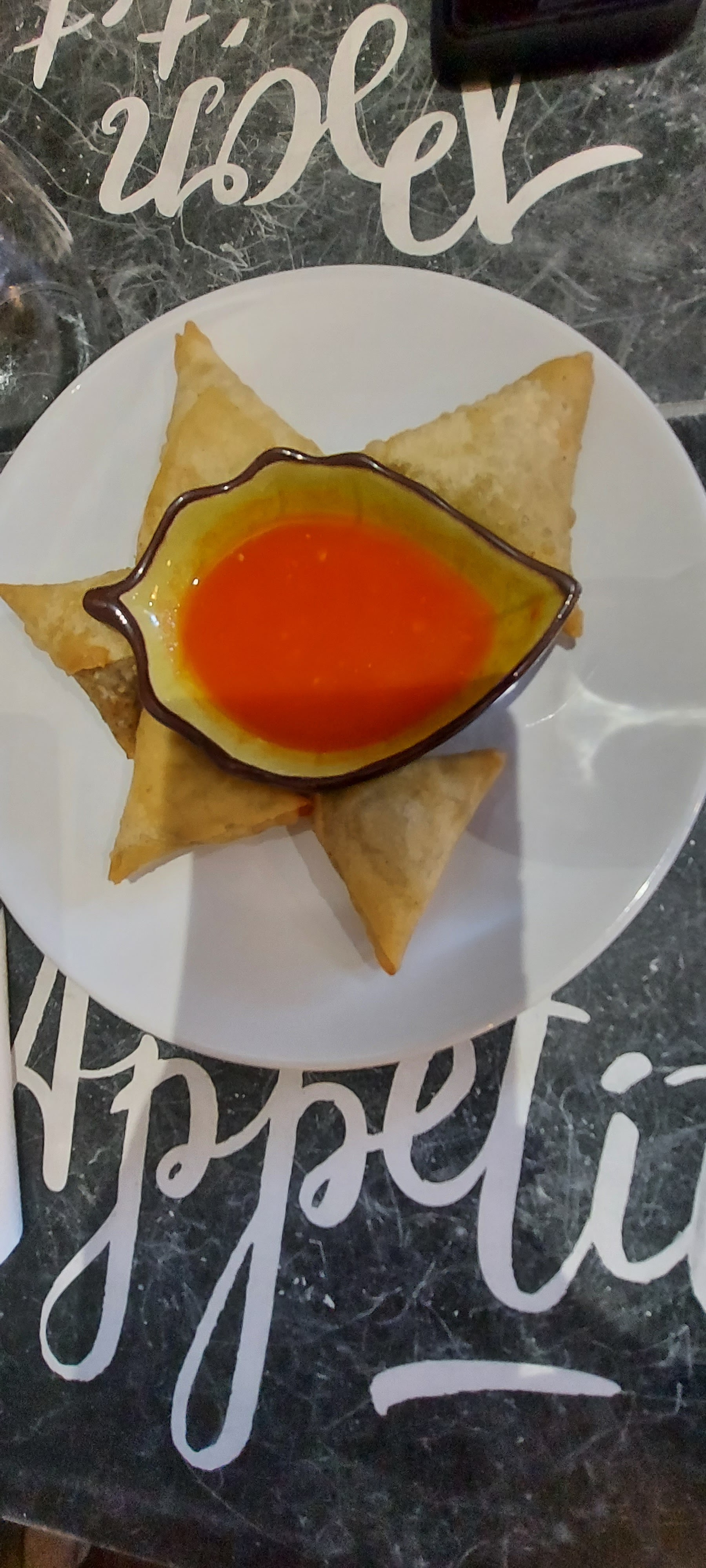 Service assez long et les quantités toutes petites . Les samboussa ont la taille de mignardises : minuscules. Jai pris un plat de couscouma : une mini cassolette de sauce ( bonne ) avec de mini bouts de viande composés a 50% de gras . Jai manger cette sauce avec 1 couscouma et demi ... jai fini de me gaver avec le pain restant . Il me semble que le.plat etait a 14e Dommage